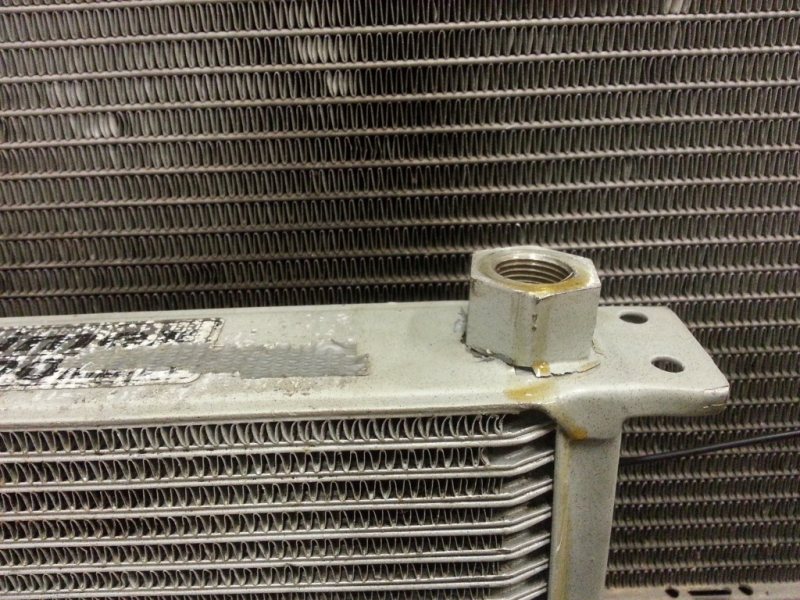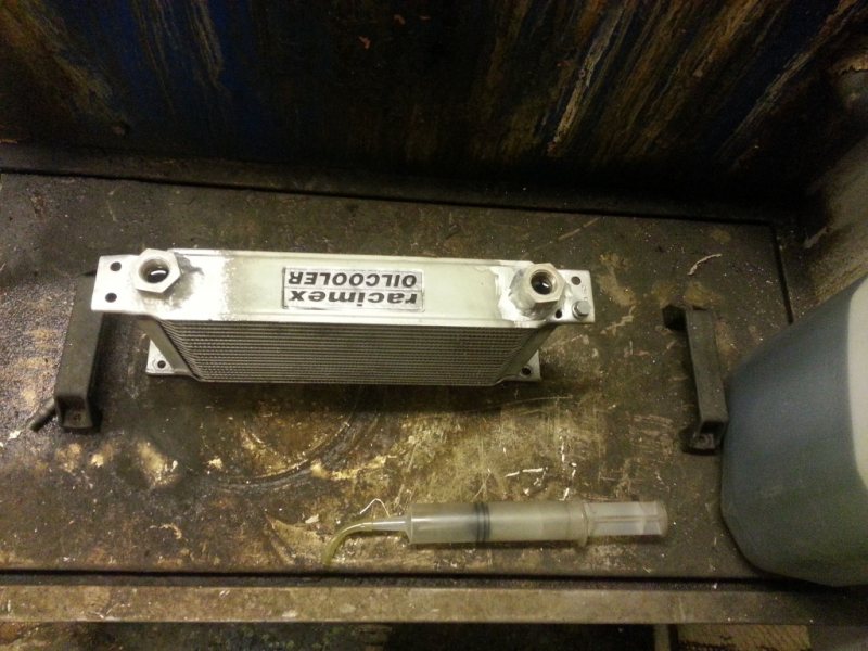 Lättast fick bli på banjobulten till oljekylaren men dumt nog höll jag inte i gjutna muttern på oljekylaren när jag skulle dra loss den så den sprack ju