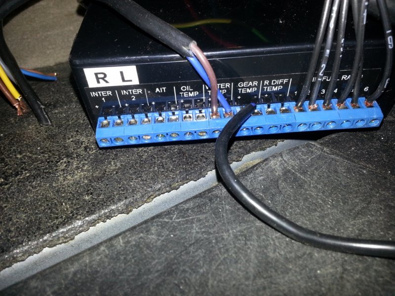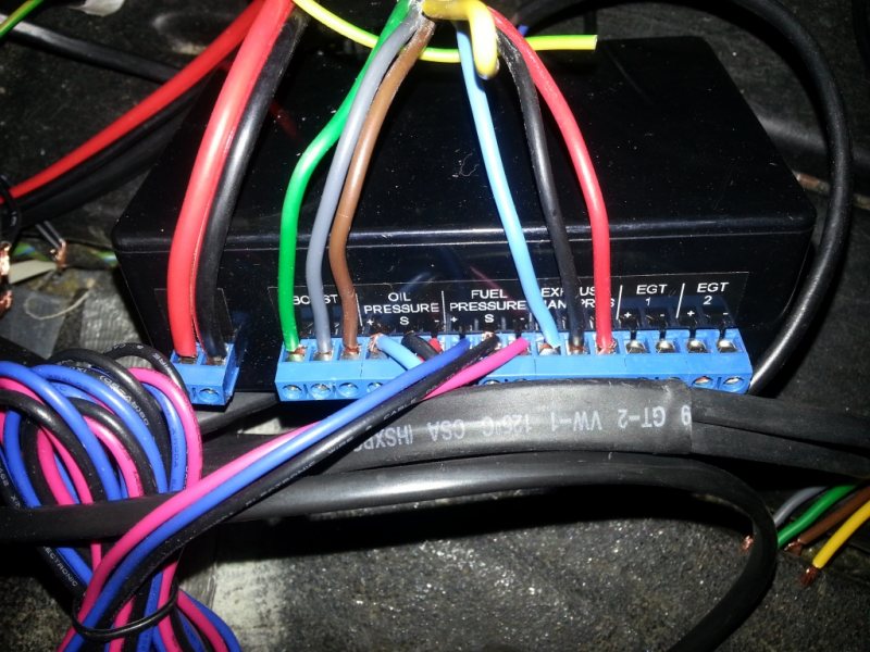 Sen flipprade lambda mätarna, det gick alltså inte att få ett fast värde, men då ville han bara att jag testade i fri luft och sen med tändar gas på lambdan för att se att värdet gick ner vilket den gjorde då, så då tyckte han att det är inget fel? Och det var så han testar produkterna, antagligen när han sitter o sniffar tändare gas.. Men jag fick honom sedan att gå med på att jag sända tillbaka min box med lambda sond för test, tyvärr tog det sen väldigt lång tid o utan svar på mina e-mail, först 2månader senare när jag skrev på hans facebook sida så vaknade han o lovade att den skulle snart skickas tillbaka. Tydligen blev det störningar internt i boxen så nu hamnade lambda delen i en egen box som sedan är kopplad till huvudboxen och efter det så funkar lambdan Senare efter några månader så hänger sig oljetrycks givaren och står på 8bar konstant, då fick jag göra en film där jag visar hur jag byter till en annan givare som då visar rätt, så då gick han med på att skicka en ny. Senare har avgas mottryck pajat och bara flipprar runt.. gjorde en ny film men sen hörde jag inte av honom på 3 månader men efter nytt e-mail så vill han först inte gå med på garanti för han tycker jag gjort något fel när nu ytterligare en givare pajat, men då jag förklarat att det dels är två olika givare samt att det är ju 1års garanti så det spelar ju ingen roll hur många eller få som går sönder så gick han med på det OM jag sänder tillbaka den trasiga till England så han kan testa den först Sen från början var det lovat att det skulle komma loggnings funktion samt OBD2 stöd men inget av detta verkar komma i närmast framtiden EGT har jag ännu inte kopplat in så dessa vet jag inte om dom funkar som dom ska.. Men är ni ändå sugna så skulle jag råda er att hoppa över lambda samt tryck givarna och bara köpa en box med temp givare för dom har funkat bra. Här till vänster är huvud boxen samt den extra lambda boxen som det går ut massa gula kablar ifrån, tyvärr blir det ju många kablar när man vill ansluta 16 givare..