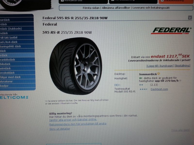 Sen blev det till att testa Federal's billiga R-däck tyvärr fanns det bara 255:or att beställa vid tillfället så fick bli det istället för 265:or som jag vill ha..