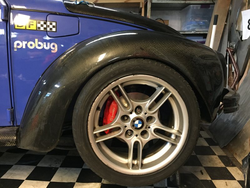 En DTA insprutning på 2.0 med turbo har testats. Helt OK. Det sitter nu Brembo ventilerade fram. Det har köpts 17" regndäck och slicks. Men det kräver bredare skärmar....ligger hos komposit tillverkaren. Hualigen så dyrt men blir bra när det blir klart. 6 cm bredare skärmar för att få plats med 17" fälgarna.