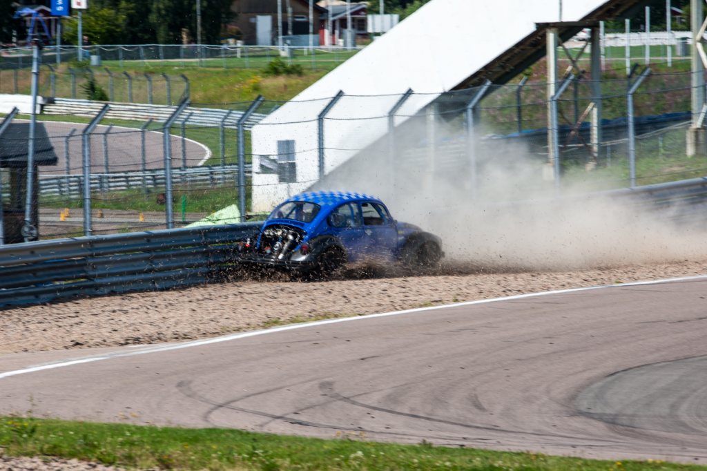 Den gick "Över förväntan" och ett par testvarv blev 4-5. Jag hade riktigt kul. Över NGK så tog det slut och jag blev en passagerare. Lewan stod perfekt och fick en serie bilder som säger allt. Bilen var "nästan" klar 2018 men generation 28 av motor (stor volym) gick ner sig i kamaxeln. Där tog det stopp och mitt fokus gick över på min dragster.