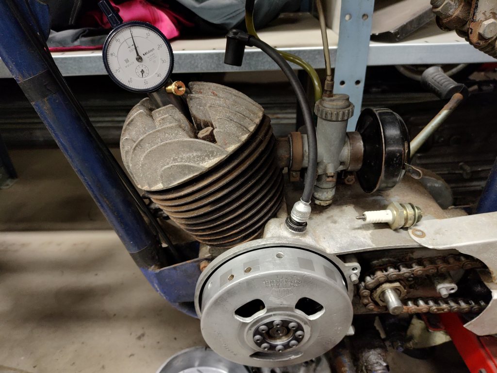 Nu kan jag mäta saker, tex när kolven befinner sig 4,5 mm före övre dödpunkt vilket är rekommenderad förtändning på JB 150 cc. Att mäta är att veta!