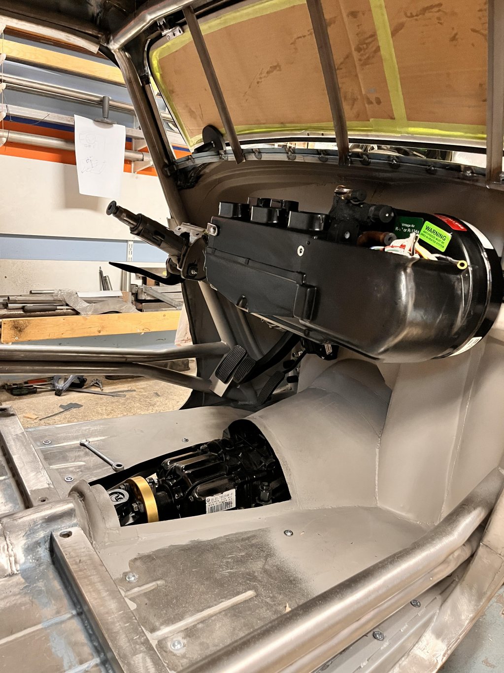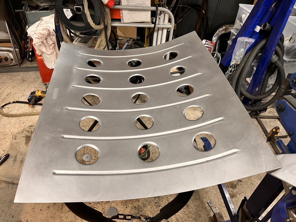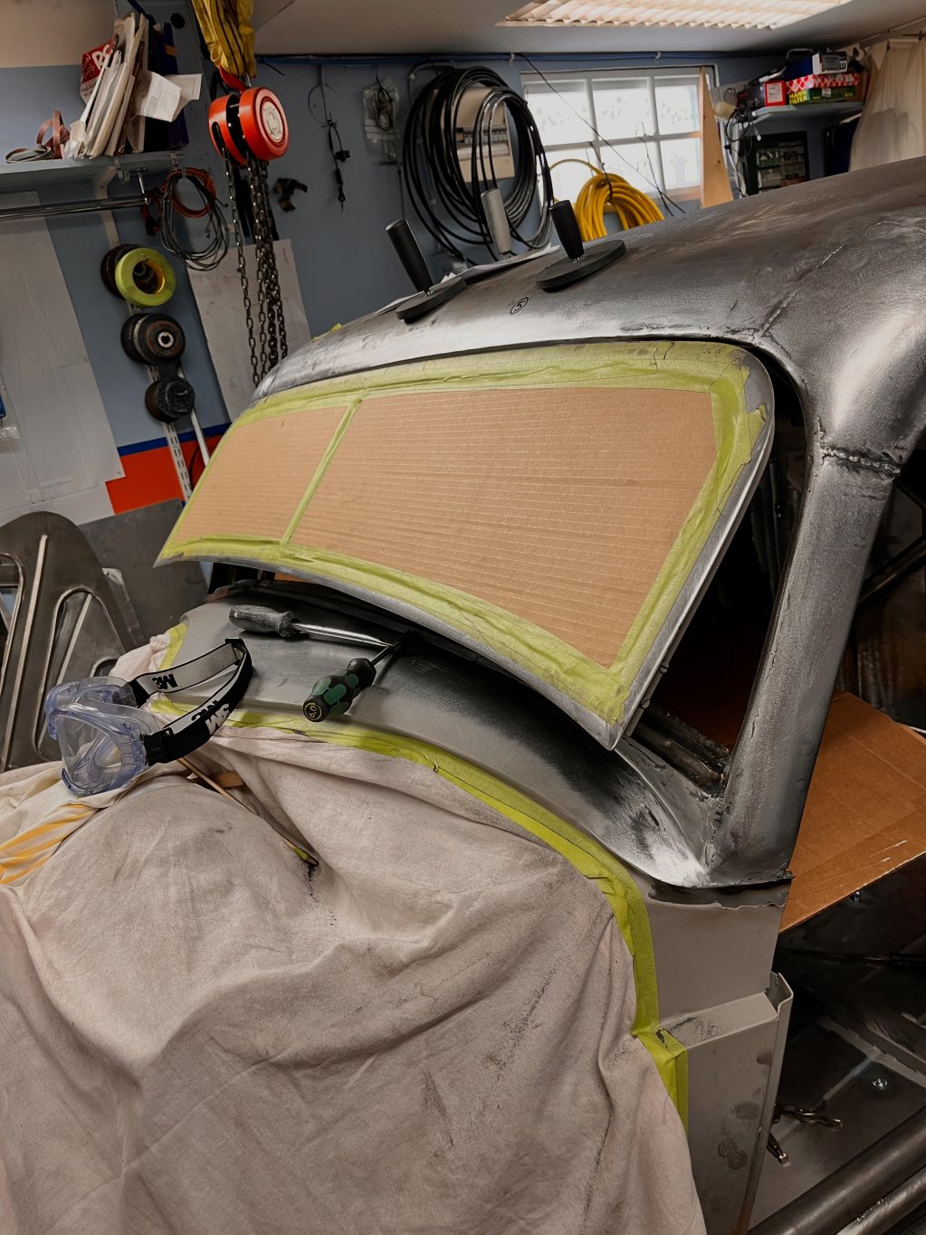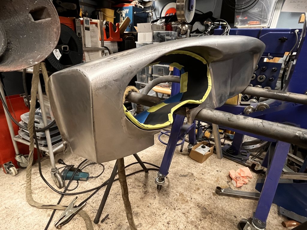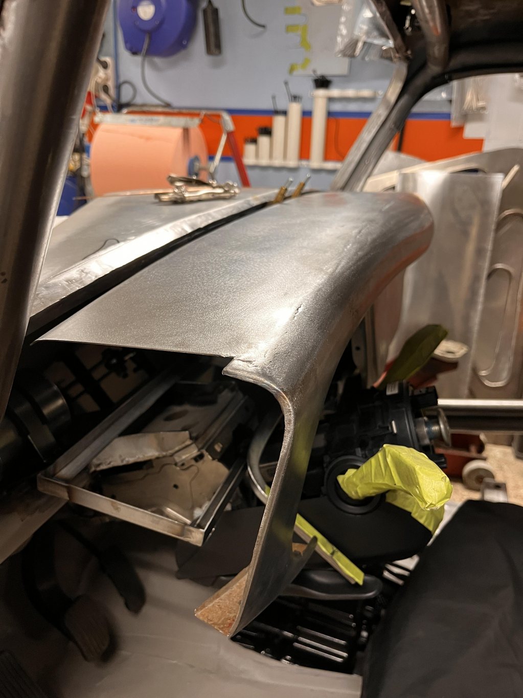 Instrumentpanelen behåller lite av originalformen, men byggs om samt blir mycket djupare för att aircondition samt en riktig dash skall få plats-mycket svetsande blir det...