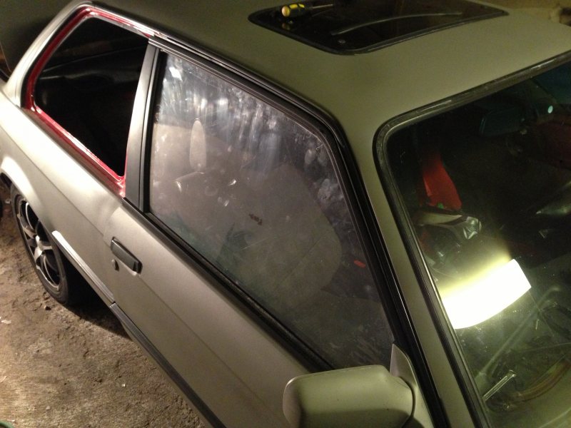 Blev lite gjort ikväll iallafall rutorna ur på passagerarsidan och prov monterat fram rutan som bara ska skruvas fast nu! Bak måste jag kapa lite på rutan för passformen ska bli till belåtenhet!