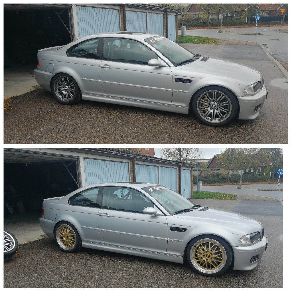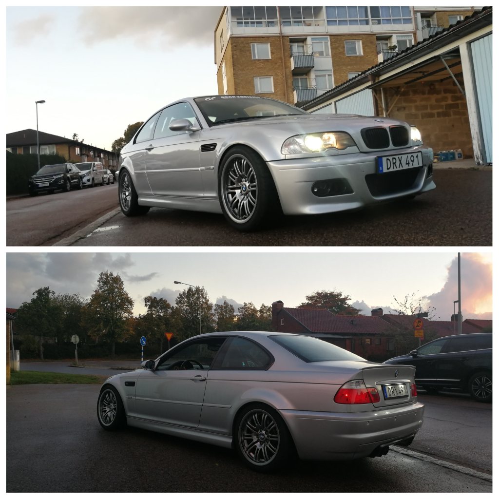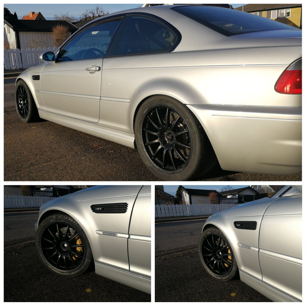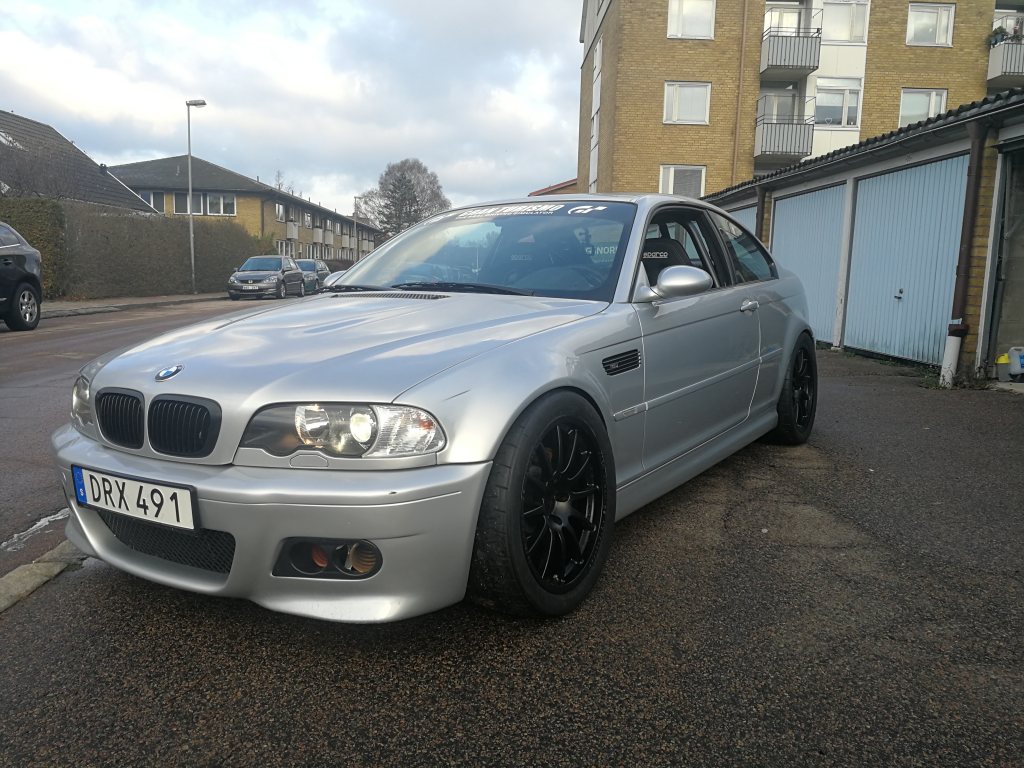 (Vinterdvala med Godis) Hösten, vintern och våren. Tiden då det finns utrymme till förbättring för att förhoppningsvis kunna åka fortare under nästa år och får bilen mer komplett. Spec lista - Ta bort black dippen på fälgarna - Ny Generator, började strula lite för mig vid sista körningen. - Nya däck. Kumho v70a, R888R, Trofeo R, Nankang AR-1. Vad är er erfarenhet? Det lutar år Kumho. - H&R Krängningshämmare BMW M3E46 Fram och Bak 30mm/25mm - Spacer 10mm Fram / 15mm Bak (Bredare hjulbas - Ny CSL diffuser bak (min har släppt i fästet) - Ny ruta (Strucken) - Ny lack på fronten - Nya fälgar 18" / 9" breda,