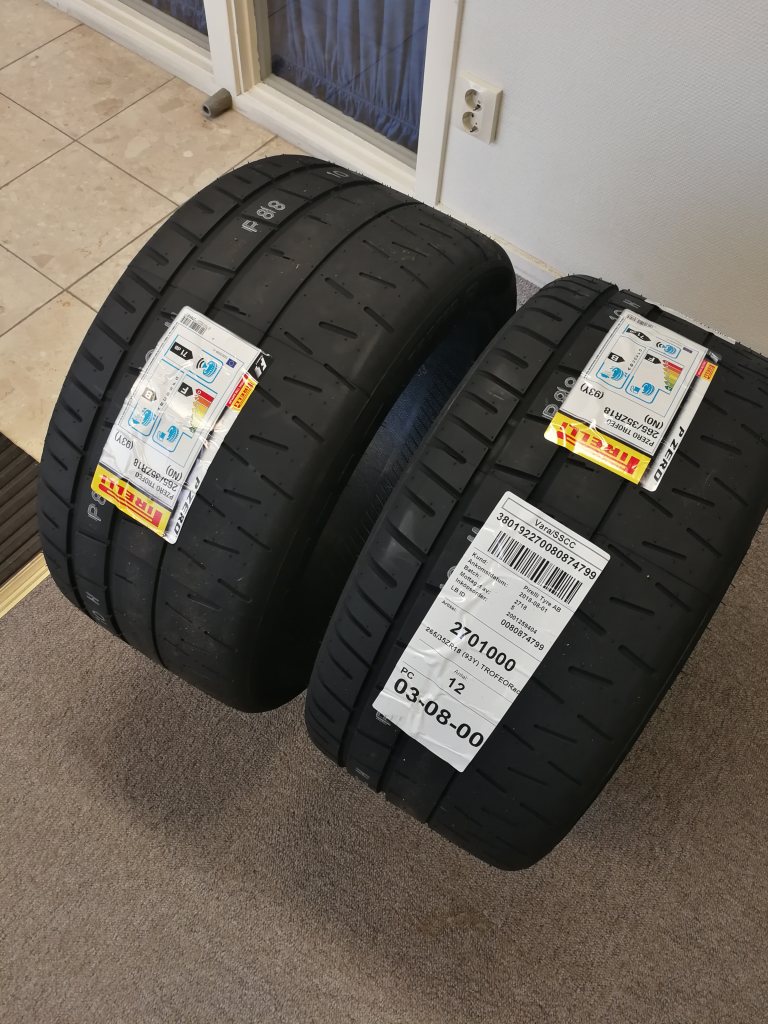 Valet utav däck till 2019 blev följande: Pirelli trofeo r som kommer köras i dimensionen 4x 265/35-18". Upptäckte dok att dessa är några cemtimenter bredare än till exempel Kumho 265or. Stort tack som vanligt till http://rallyshop.se/ som agera snabbt och proffsigt, precis som vanligt. Blir spännande att prova ett nytt märke för att ha någonting att referera till. Ni som kört detta däcket innan, vad är er uppfattning? Vilket däck tryck kör ni med osv?