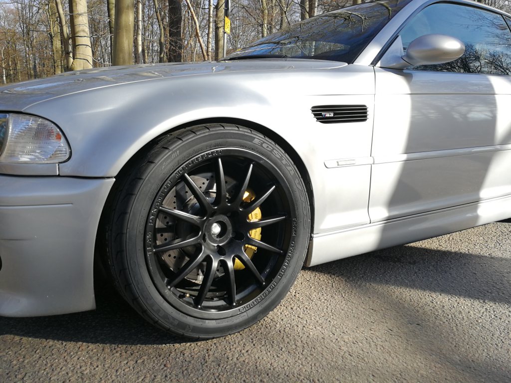 Jag tror i ditt fall Nico att största anledningen att du har problem är för att du kör med en fälg fram med ET15. Det är ett väldigt lågt ET att få plats med fram på en e46. För mig började 265 rubba lite på skärmkanten redan på ET23.