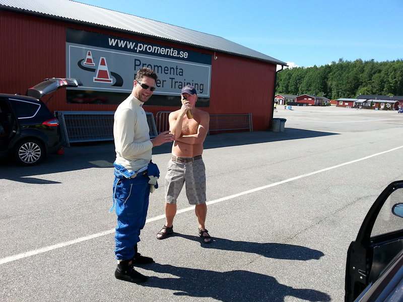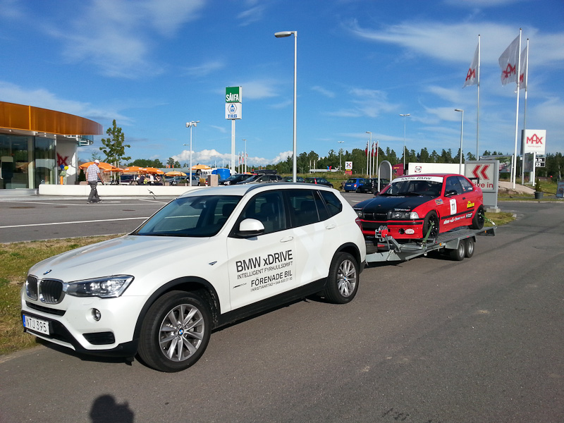 Det var oklart in i det sista om jag verkligen skulle bemöda mig att baxa mig själv och racebil hela vägen till Värmland för att köra tävling på en bana jag aldrig ens testat tidigare. Nåväl. Jag tog mitt förnuft till fånga och när Förenade bil i Kristianstad dessutom var vänliga nog att låna mig en X3a som dragbil så var saken avgjord. Resan avlöpte någorlunda smidigt i gott sällskap av min far, även om det tog sina timmar. Väl framed vid banan så var ungefär hälften av ekipagen på plats. Avslutade fredagen med att vandra ett varv runt banan för att bilda mig en uppfattning. Gustavsson var på plats sedan tidigare i veckan och hade redan tjuvtränat Det skull bli svårt att hålla hans takt tänkte jag.