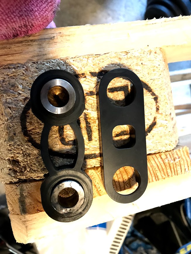 Bakom denna "raiser" sitter en bussning som original är klen och gör att hela styrväxeln viker sig vid påfrestning så hjulinställningen blir dynamisk.. Detta löstes genom att sätta dit en rackare i delrin som styvar upp och ska göra mirakel.