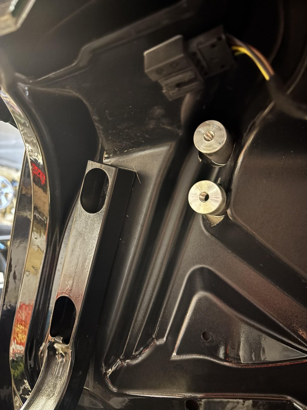 Bad en kompis bygga fästen som förstärker och sitter i gångjärnen på luckan.