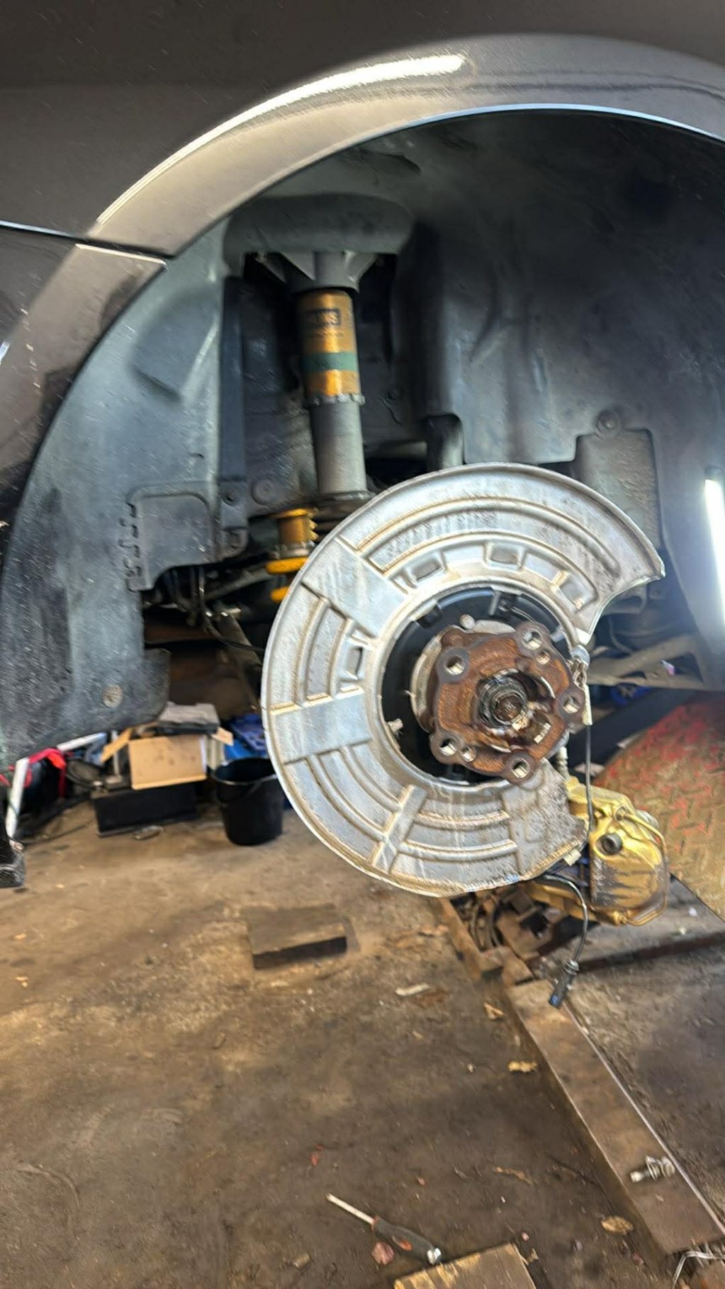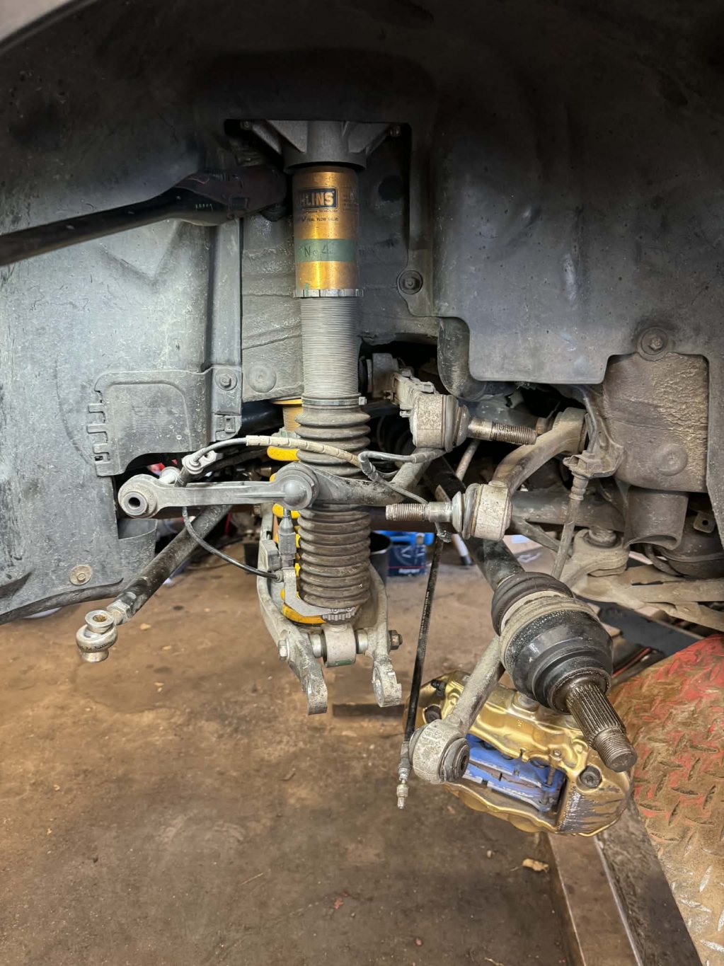 Efter olyckan var den troligen lite böjd för vi fick inte till den sista halvgraden camber på höger jämfört med vänster.