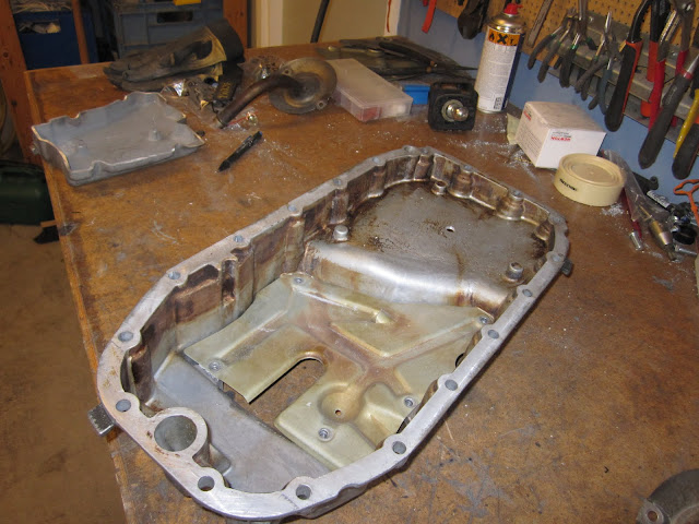 Hade besök av Jörgen i helgen och vi diskuterade bl.a design av oljetråg och baserat på detta börjat att modifiera det.