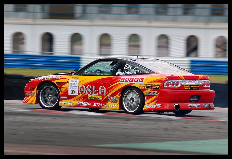 Skulle vilja ha mer luft till vänster (framför) om bilen dock, ger mer känsla vilken riktning bilen har. Sen är den ju sönderkomprimerad så du får raster i alla skarpa linjer (och det blev ju ännu värre efter min petning), oklart om det är pga .jpg eller rejsa men det är inte schnyggt. Summering av vad jag gjorde: -Räta upp horisonten -croppa ner den i höjd -vinjettering -pilla lite i färgtemp -lite mer kontrast Nu blev jag sugen på att åka på banmöte med kameran ist för bilen...