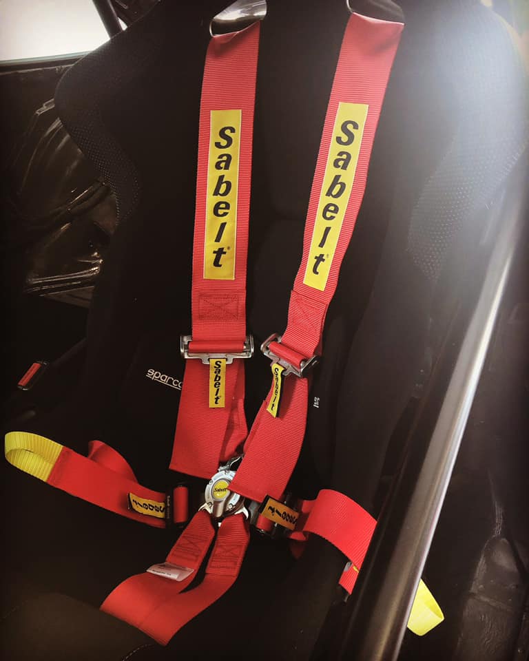 Det som gjort sen senast är att bilen justerats o höjd fram och fått nya hjulvinklar, monterat på en 18mm RS-krängare bak. Jag har även bytt från svart bälte till rött och färgat om det lilla som fanns kvar av inredningen från grått till svart.