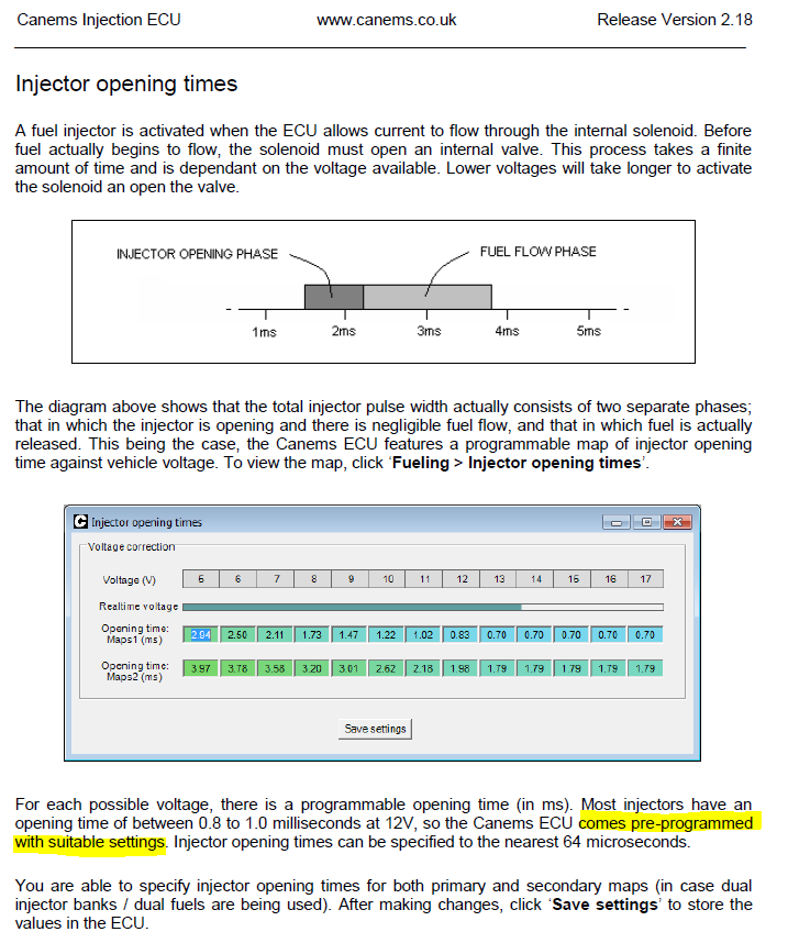 Kolla om du har datablad på spridarna, man ska kunna få information om deadtime vid olika spänning från tillverkaren. Det är inte säkert att det är rätt inställt i ECUn eftersom det finns en grundinställning som default (se det gulmarkerade):