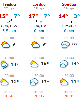Bara hoppas vädret flyttar sig en dag till så blir det 3st regnfria dagar