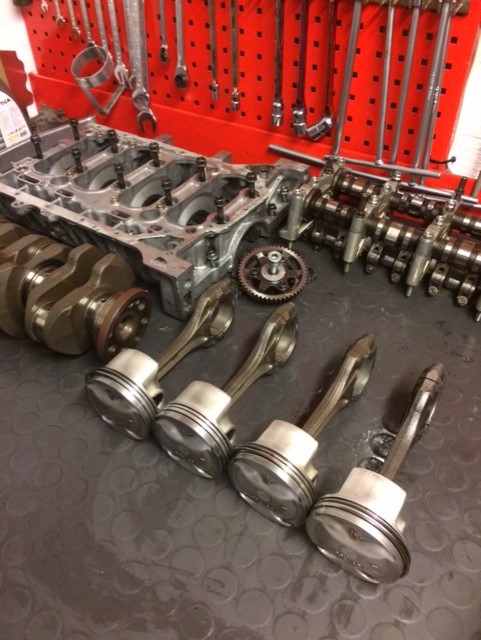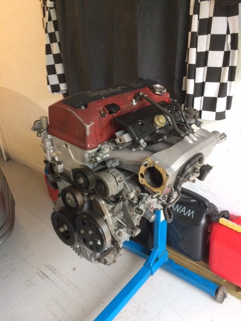 Komplett F20C2 motor i delar, sånär som på att ett vevlager som snott runt så att veven är dålig där.