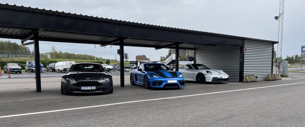 Utan att ha kört en Porsche av senaste snitt kan jag tro att det kräver en tränad förare för att köra dem fort. De beskrivs ju vara löjligt lättkörda med fantastiskt välkalibrerade hjälpsystem men när det börjar gå riktigt fort är det väl snarare knoppen som säger ifrån, att modet tryter. I de allra flesta fall med en nomalbegåvad track day-förare bakom spakarna framförs bilen ganska långt från vad den är kapabel till. Bilarna i filmen från Rudskogen är teoretiskt sett våldsamt mycket snabbare (3-5 sekunder?) än min V8 Vantage men det krävs erfarenhet och talang för att kunna ta dem till gränsen. En lättkörd bil som aldrig bjuder på obehagliga kast och med mindre effekt är naturligtvis lättare att köra närmare dess teoretiska gräns. Kanske därför man i slutändan hamnar på ungefär samma tempo?