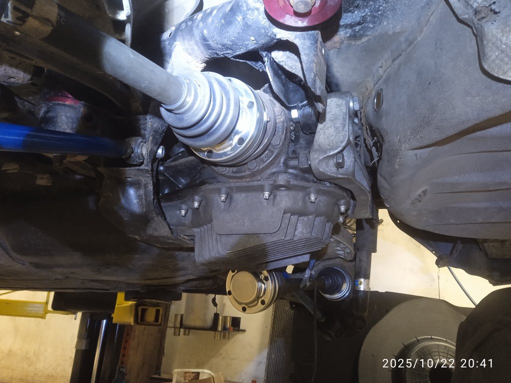 Det är ca 40mm på höger sida mellan diff och drivaxel. En höger drivaxeln från E46 m3 är faktiskt precis så mycket längre än vänster (Jag har två vänster) , så eventuellt passar en högerdriv axel direkt. Jag skall mäta nogrannare med grejorna i bilen.