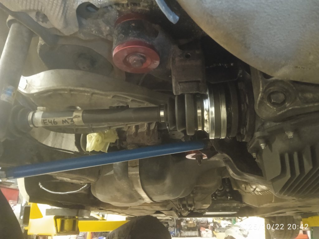 Är från BMW F10 520d N47N, 7621287. Bolt on fram och bak förutom man behöver korta den. Har även beställt en e46 m3 höger drivaxel. Enligt mina mätningar skall det kunna passa precis. Vänster är 617 och höger 657. 40mm. Vilket är samma som mellanrummet.