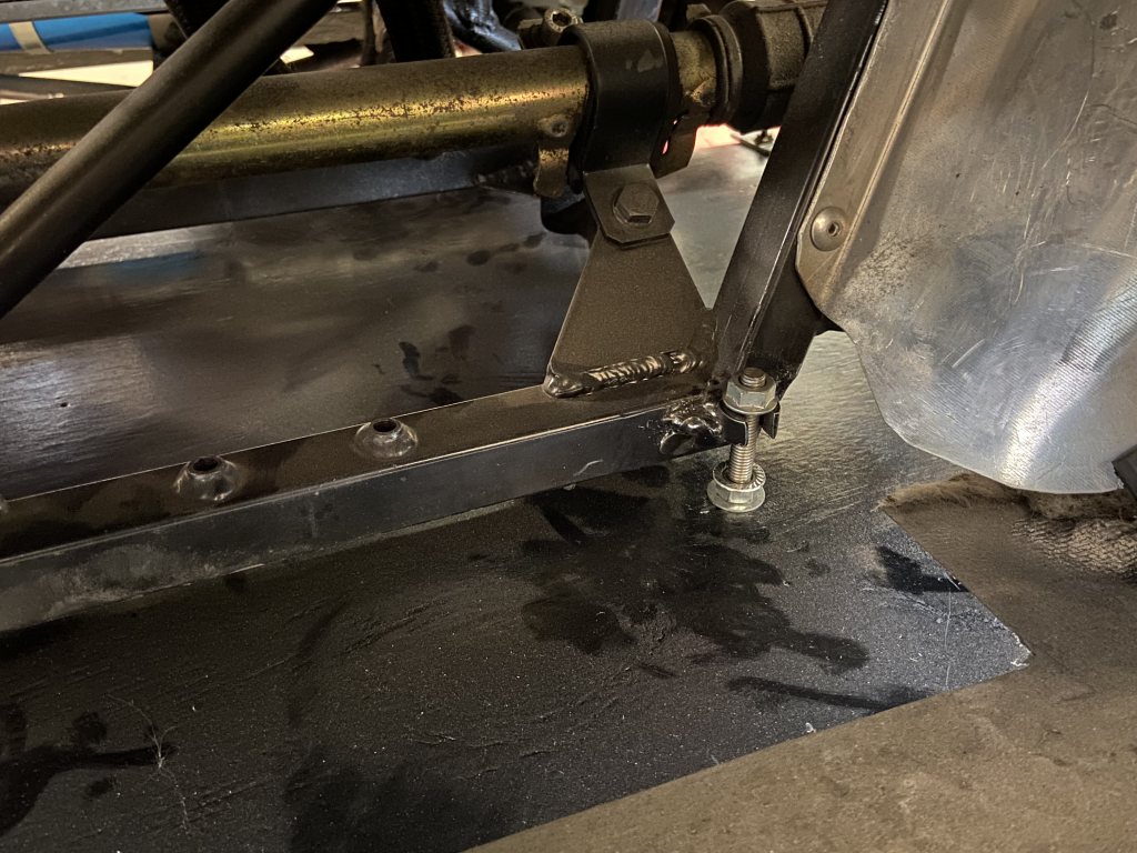 Jag tyckte mig se brake-off fästen i bakkant (dvs vid smäll framifrån så sticker splitterskivan inunder bilen). Men jag har säkert feltolkat din tanke på att binda ihop saker till en enhet? |
