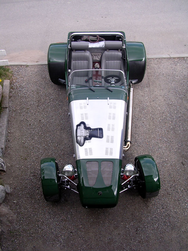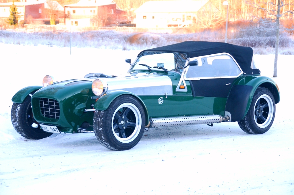 Pegasus SevenPlus Ett sevenbygge med lite extra touch vad gäller stil och interiör. Byggd på ett Pegasus SevenPlus-kit levererat av den dåvarande svenska Pegasusimportören. En glassätarbil utrustad med svindyrt cabriolet-kit med dörrar. Värmepaket från VW Polo. Sufflett och dörrar är lätt avmonterbara. Sufletten och värmen är bitar som gör den klart mer användbar i svenskt klimat. Påkostat rostfritt grenrör och avgassystem. Träpanel i bräda och mittkonsol ger tillsammans med specialsydda mattor en ombonad känsla. Bucket-seats i galon med nackstöd (vattentåligt när man kör "nedcabbat"). Denna bilen är i första hand inte byggd som en banåkabil. Ursprungliga byggaren tänkte från början i lite mer hardcore banor, men insåg att det inte finns så mycket möjligheter att åka bana i Sthlmstrakten så han svängde om lite och bilen byggdes i stället som en trevlig glassätarbil/gatbil för att vara lite mer all-round användbar. Bilen är byggd 94-95. Första besiktning sommaren 1995. Jag köpte bilen i "färdigt skick" 1998. Har rullat sammanlagt under 700mil mellan 1995 och 2007. Därefter har den förvarats inomhus med urlyft konserverad motor. I nuläget sitter en 1600 Zetec monterad med originalspec, som enl uppgift hade gått 600 mil vid monteringen. (1600-maskinens lägre effekt krävdes för ursprungliga besiktningen). 5-växlad ford typ-9 växellåda. Taunus/CortinaMkIII bakaxel med 3.77 utv. Spax justerbara coilovers. Revolution 5-spoke 15x8". Trummor bak och skivor fram med ford M16-ok. Kort Escort styrväxel. OMP moccaratt. En helt nyihopsatt Zetec 1800 finns vid sidan av, aldrig startad och aldrig monterad i bilen. Nyborrat block med nya delar. Kolvar med lite högre komp och Kent "fast road"-kammar. 1800-motorn är ihopsatt av Elwa Motors. Tanken var en gång i tiden att köra med eftermarknadssprut och individuella spjäll. Således finns ett helt nytt Prospark sprut inkl tändning och en lös ITB-brygga från Suzuki 1100, dock aldrig ihopmonterat med 1800-maskinen. Bilen är påställd och säljs såklart nybesiktigad. Jag besiktigar så snart klimatet tillåter. Superbillig försäkring genom "Bilsport&MC". Vi pratar pris om du är intresserad.