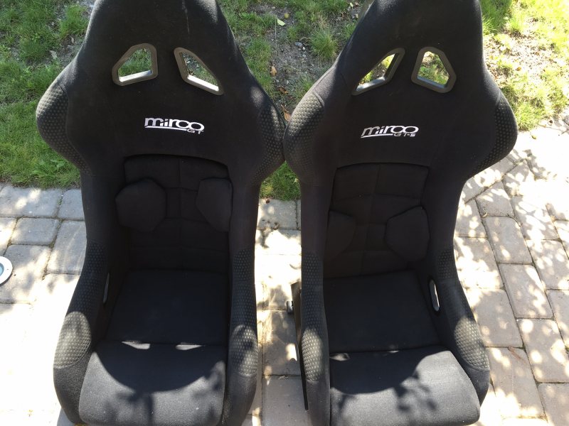 Säljer av lite stolar som jag inte behöver mer. Gärna två och två, men bättre pris vid köp av kompletta 2. Mirco GT och GT-s, där ena -s är lite mindre än den andra. Finns stolsfästen till. Dock inte justerbara. GT3-look, där finns det stolsfästen som är sliders som passar Porsche rakt av.