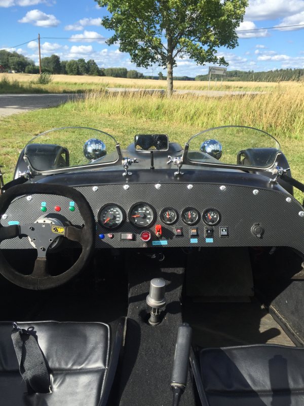 En välbyggd Super Seven säljes. Chassit är från MK Indy och är byggd 2011. Motor 2,0l zetec Fordmotor "silvertop" Med Vems motorstyrning Ca: 140-150hk Delad bakaxel med quife diff Typ 9 växellåda "Protech shocks" ställbara stötdämpare. Glasfiberstolar med justerbara fästen och glidskena på förarplatsen för att passa olika förare. Special stoppning i stolar. 6-punkts bälte på förarplats (Fia godkänt) 4-punkt på passagerarsidan (Fia godk) Snap-off ratt. 17" aluminiumfälgar från Team dynamic motorsport, med fräscha däck. Extra breda bakskärmar medföljer. Aerosreen finns om man vill ha ett mer race utförande utan rutorna. Och en hel del extra delar. Vid snabb affär följer en uppsättning fräscha R-däck på "minilite" alufälgar med. Denna bil är av samma typ som övriga kitcars från typ caterham, westfield från det engelska konceptet Locost. Besiktigad och klar att ut och köra på väg eller bana. ring gärna ist för mail 125,000kr 0707564007 / Henke Länk till Blocket: https://www.blocket.se/stockholm/Sup