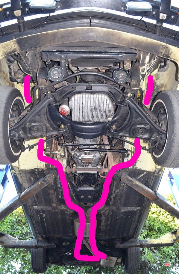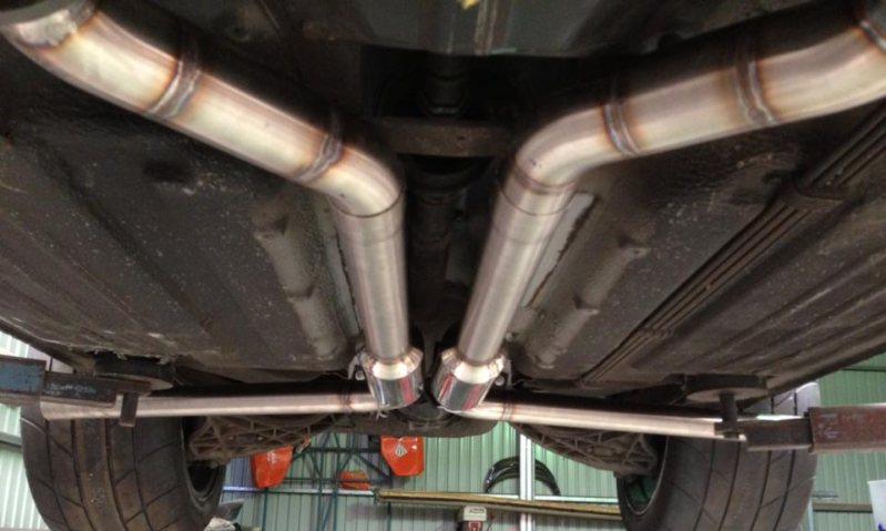 Hallå! Blir att dra om avgaset på mercan och för att undvika att avgaset inte tar i backen så tänkte jag köra 2 längsgående dämpare i rörform under bilen som sedan med en krök bildar ett utblås framför bakdäcket på varsin sida. Motorn: 5,6L Mercedes V8 med dubbla turboaggregat. Tänkte köra dubbla 2,5" och 2st dämpare med benämningen UD3400B-63