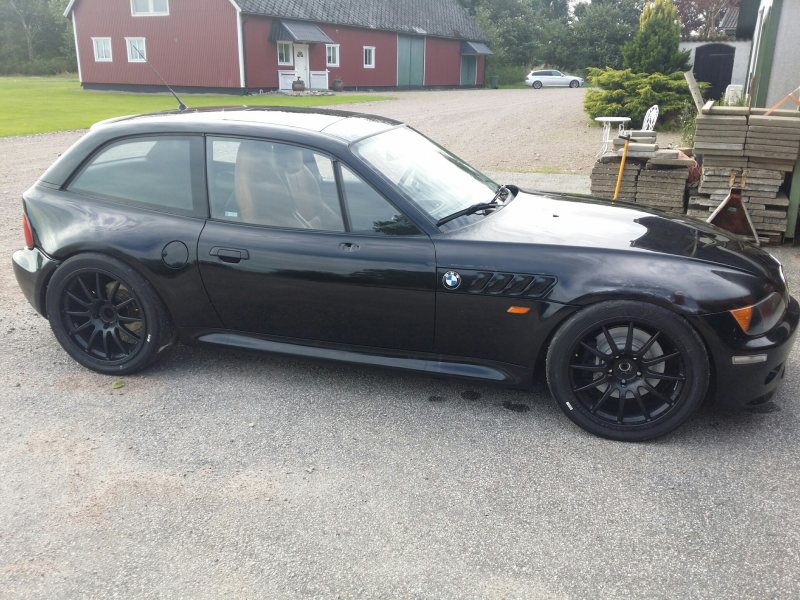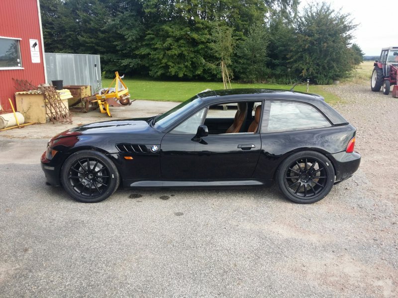 SÅLD! Intressekoll sälja BMW Z3 Coupe 2.8 Mitt bil intresse går upp och ner i vågor med alla mina andra hobbys. Just nu är det nere så jag kollar om någon är sugen på mitt lilla projekt. Jag har en Z3 Coupe 2.8 som jag köpte i ett väldigt ledset skick. Flera av Panelerna (som går och ta av) hade repor eller som fronten till och med bucklor. Tidigare ägare hade varit och vänt i någons trädgård igenom ett staket eller nått. Perfekt objekt för en ban-bil med andra ord! Jag bytte eller renoverade ALLT som har med hjulupphängning och bromsar, lättade den lite här och där och när det endast var avgassystemet kvar att fixa. så tittade jag lite för mycket på time attack och fick för mig att börja göra kolfiber paneler. och sen stod det still. Motor, växellåda och diff är testade en runda vid inköpstillfället, och fungerade bra. Tidigare ägare har inte haft några problem. Motorn går att starta, men utan avgassystem inte köra. Hjulen som kommer med är inte mycket att hänga i (h)julgranen. Den är svart, med brunt läder på sätena annars helsvart inredning (mattor osv). Den har taklucka. Vad är gjort: Bromsar - Nya skivor, nya belägg, Nya ok fram, blästrade och renoverade bak. Nya goodridge bromsslangar, nya handbromsbackar, vajrar och hårdvara. Hela fram uppgradera till större skivor och ok för e46 330. Oken är målade med värmefärg och bakade i ugnen. Framvagn - Nya HD meyle bärarmar, delrin bussningar från Millway, nya styrändar saker, nya krängningshämmar länkar saker, nya hjullager, nya krängar bussningar. Spindlar, krängningshämmare och X-brace blästrat och målat. Bakvagn - Millway bussningar i allt, alu och delrin. Hela bakvagnen blästrad, installerat camber och toe justeringar från millway och sen målat. ALLT är alltså nytt eller helt renoverat på bromsar, fram och bakvagn. Just det, alla bultarna guleloxerade också. Dämpare fram och bak är K-sport racing. Aldrig använt själv men tidigare ägare (till en tidigare z3a) hade använt det på ett par slalom tillställningar och några hundra mil. Inne i bilen har jag tagit bort ljudsystemet och hela kabelpiskan till denna (mega). Alla asfaltsmattor är borttagna riktigt snyggt. Ni som gjort detta i en z3a vet hur mycket jobb detta är . Just nu är faktiskt tyg-mattorna tillbaka i bilen, men det är snabbt och lätt rensat nu när man väl gjort det en första gång. Alla airbags är också borta och ersatta med motstånd. Mojäng för nollställning av detta finns med. Panelerna samt en del av instrumentbrädan är proffsigt klädda i kolfiber för lite bling. Vad hindrar den från att vara "klar"(besiktningsbar och skoj): Avgassystemet inkl grenrören. Grenrören sitter kvar men är kass, dom gamla med inbyggd kat som alltid strular. Avgassystemet som satt på finns men det är inte mycket att ha, rostigt och dant. Jag har börjat göra "former" av vissa paneler, fronten, huven och bakluckan med expanderat skum och sånt. Går att återställa snabbt och lätt, men om jag ska behålla den så vill jag inte ha det ogjort. Hjul... Vad hindrar från att den är i riktigt fint skick: Huven behöver bytas. Paneler som behöver fixas (målas om och i vissa fall smått lagas) - alla som inte sitter fast. Panelerna som är nice är alla dom som sitter fast. För detta vill jag ha 45.000 skicka PM eller om ni är facebookare så https://www.facebook.com/marcus.jarl Hjulen finns inte kvar