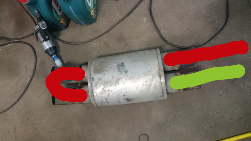 Hej! Vad tror vi om att använda en ljuddämpare med dubbla ingångar men bara ha ett rör ingående som går in två gånger? Röd: inblås Grön: utblås
