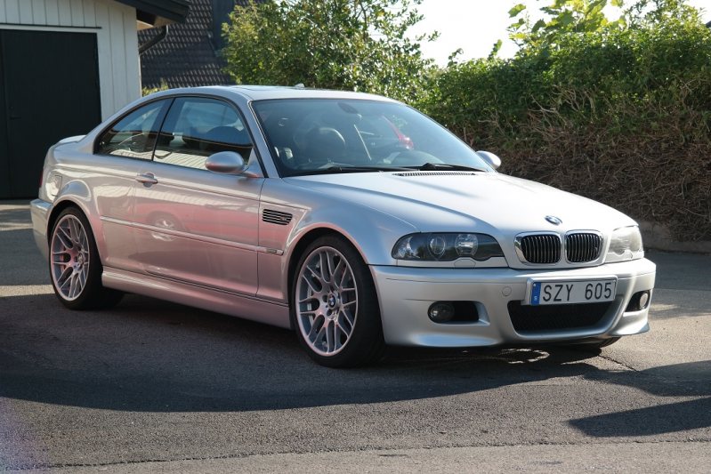 Hej, Dags att släppa taget om m3an för att få plats med annat. Bilen är från 2002. Manuell växellåda Svensksåld 14000mil vilken dag som helst. Silver med svart halvskinn Original csl-fälgar med nästan nya Michelin Pilot Super Sport finns men då vill jag ha en extra slant, säljes med Original 19" fälgar och Vredestein däck. Original csl bagagelucka Kopia csl diffuser kolfiber/lackerad alcantara damask zhp växelknopp nybytt koppling och svänghjul nybytt ac kondensor bytt generator m.m.m.m. Inväntar en ny motor till elstolen då en av dessa har gått sönder. Skall också trycktesta samt fylla ACn då jag precis bytt ut en trasig kondensor. Annars är allt funktionellt förutom CD-läsaren(s54 finns). Säkerligen har ni massvis med frågor så skriv gärna ett PM eller maila mig på adam_andersson91@hotmail.com. Skickar fler bilder när jag sitter vid en dator då det är värdelöst att sitta med smarttelefonen. Priside: 199 900:- eller högst bjudande