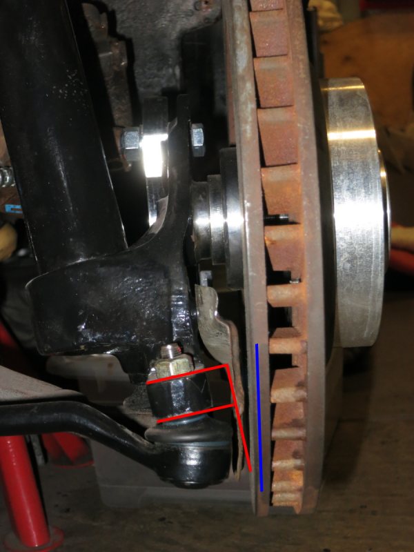 för styrleden har inte en 90 graders vinkel mot bromsskivan.