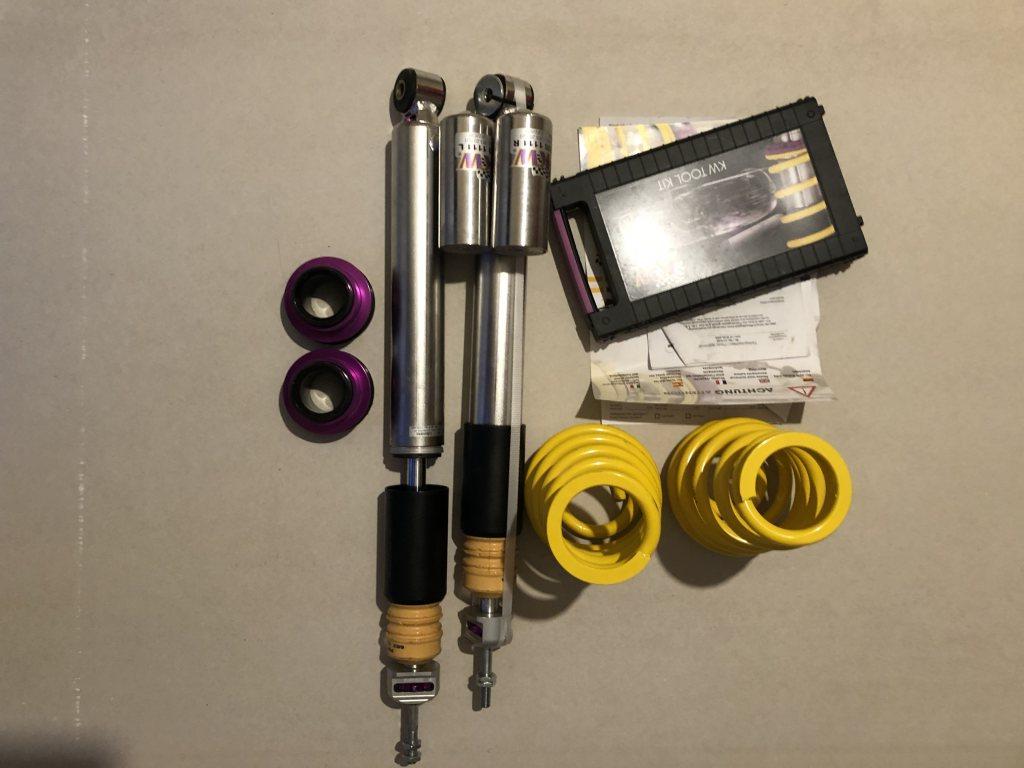 Har ett kW v3 chassi över nu när jag säljer bilen. Aldrig monterat bak. Fram endast 250mil.
