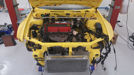 Vissa bilder blir rätt små av nån anledning. Nåja, nu är vi ungefär ikapp vart jag står idag. Turbon har fått olje- och vattenslangar. Spridarna är bytta till 1000cc dito. Jag har fått ett par sidokjolar/pods i plåt bockade och börjat montera dem. Nästa steg är att göra klart downpipen med rör för wg och sen ska jag ta tag i trycksidan med lite nya IC-rör och dumpventil. Sen ska det kopplas givare för luft-temp och map-sensor. När det är gjort borde det gå att starta bilen igen, fast med en GEMS ecu jag har ligger. Jag har inte bestämt mig för hur jag ska göra med kammar, original kommer kanske bli ett problem för att få ut bra med effekt, men som sagt så går allt på sparlåga pga ekonomin just nu. Sen finns det att göra kosmetiskt, har åkt utan tanklockslucka 2017 eftersom jag måste hitta på en lösning för gångjärn för den, det blev en annan lucka pga breddningen bak. Jag vill bygga frontsplitter och nån slags diffuser bak, men funderar än så länge bara på hur det skulle kunna gå att lösa. Jag kommer fortsätta uppdatera när det händer grejer.
