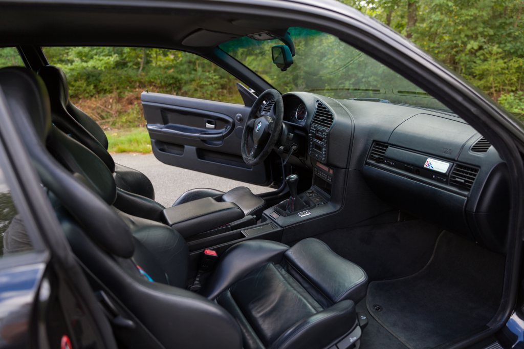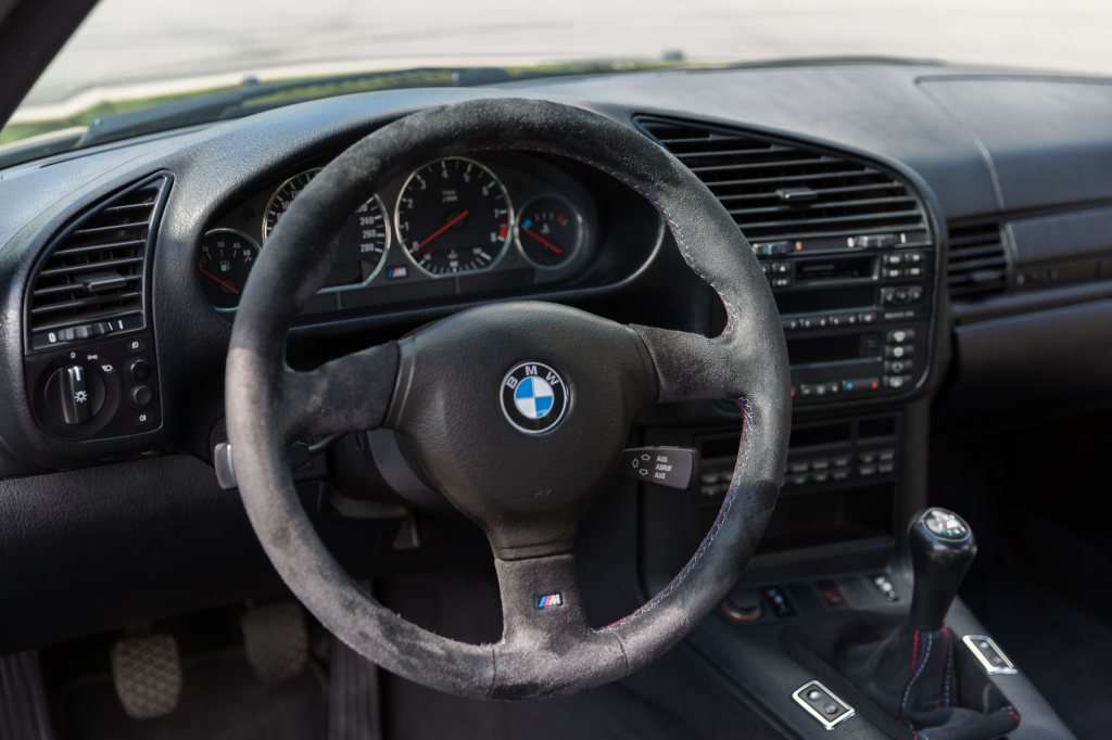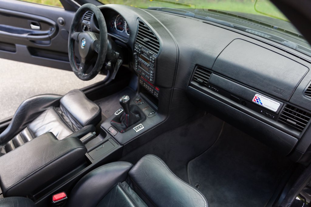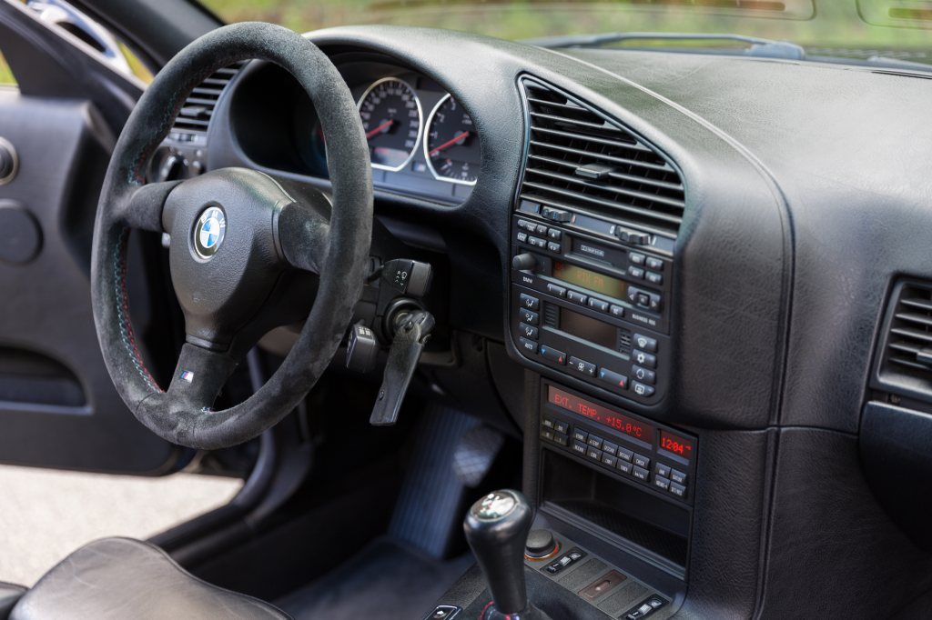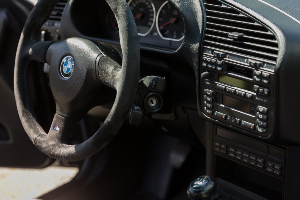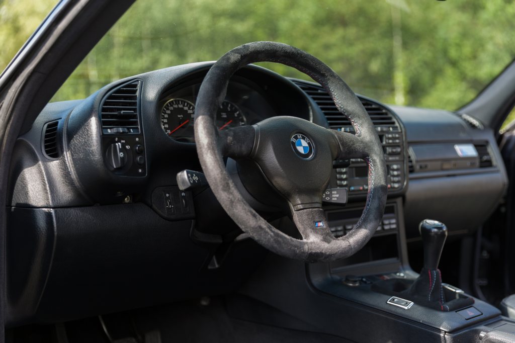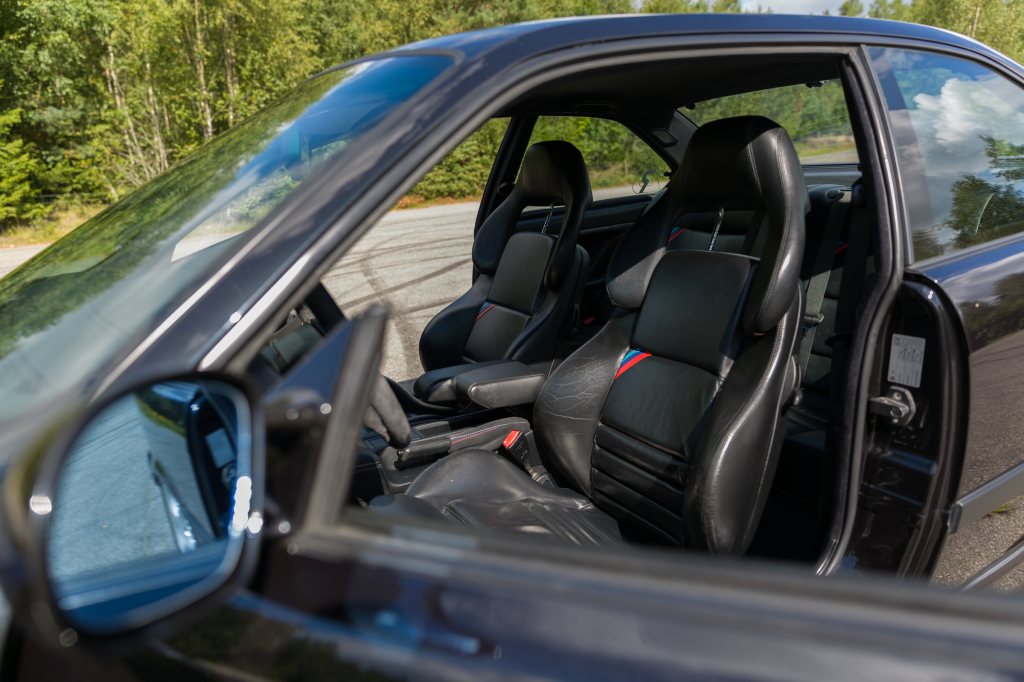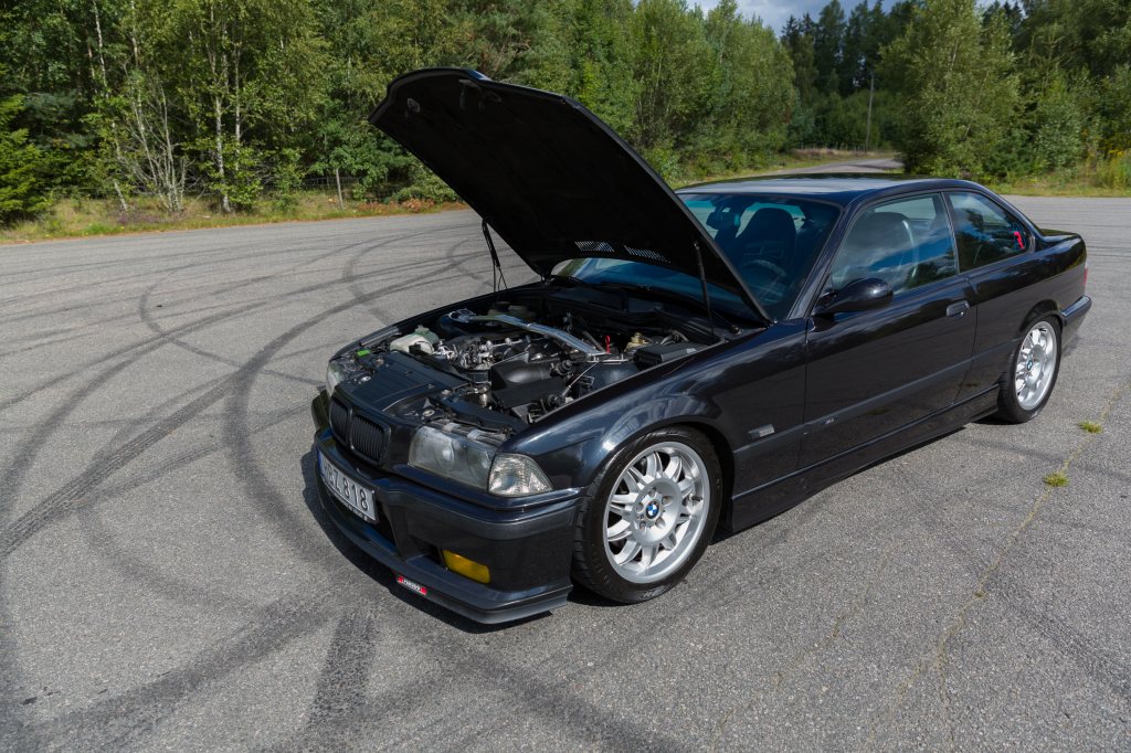 Den är modell från 1996 och det betyder att den har dörrar i aluminium! Det var bara M3 3.0 GT i 1995 och M3 3.2 i 1996 som haft original aluminium dörrar från fabrik, så den är lite ovanligt.