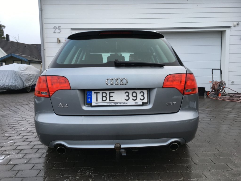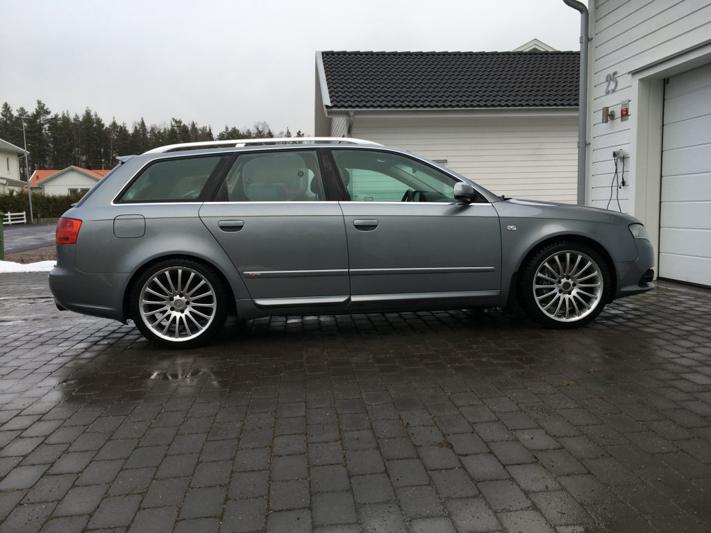 Bil som tål några varv på bana men också att skjutsa barnen till dagis! Kan behöva lite trim för att bli snabb, men den bromsar i alla fall grymt bra! Audi A4 Avant 2007 1.8T 163hk - Motorn original 17300 mil Manuell växellåda S-line paket Gråmetallic med mörk tygklädsel 2-zons klimatanläggning, A/C fungerar 18" vinterfälgar med Goodyear Ultragrip Ice 225/40 dubbdäck - endast gått c:a 100mil 18" sommarfälgar, äkta BBS challenge med Pirelli P7 225/40 - c:a 5mm mönsterdjup kvar Dragkrok - avtagbar Motor och kupévärmare - Defa Farthållare Regnsensor Audi concert med original audi subwoofer i bagaget - bra ljud! Porsche Cayenne / Touareg (17Z) Brembo bromsar fram med S60R 330mm skiva. Rostfria kolvar. Project my clubsport belägg - Mycket bra bromsverkan! Nyservad med: Ny kamrem / vattenpump och spännare Ny kylarvätska Nytt luftfilter Oljebyte Ny startmotor Relativt nyligen bytt på bilen: Batteri Bromsar runt om Fjädrar bak Pris: 45.000kr, finns i Linköping!