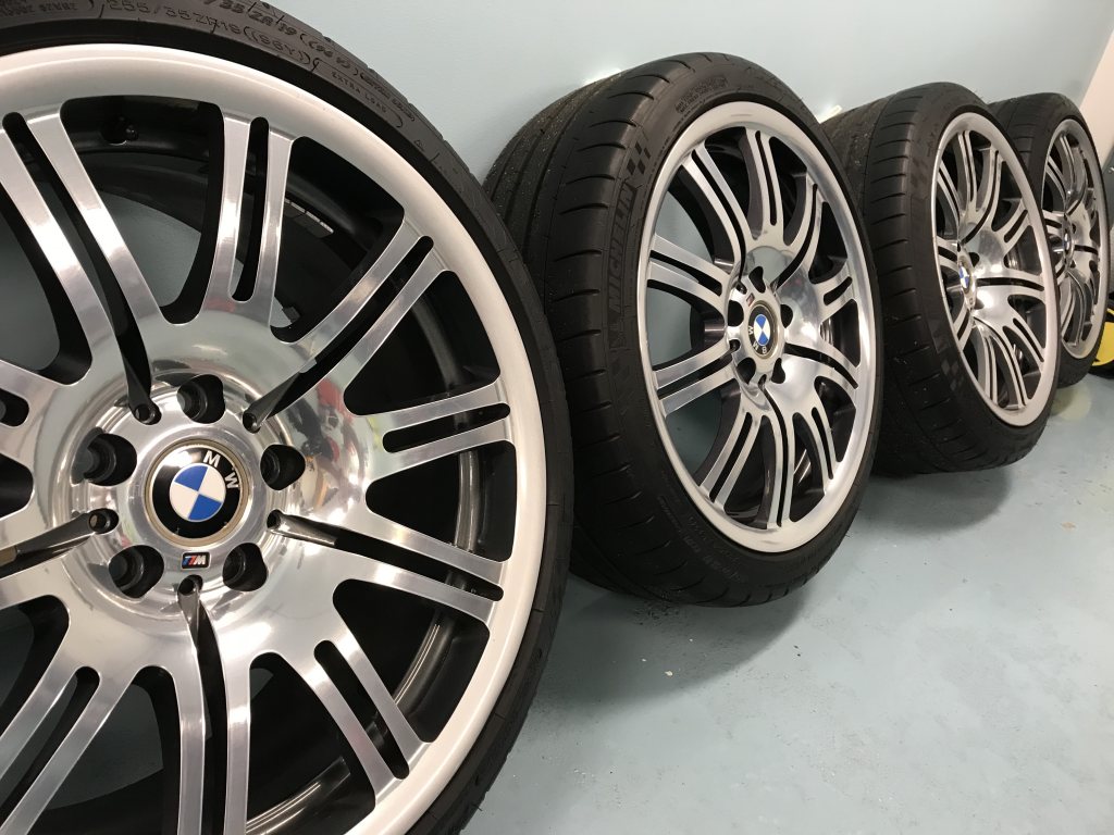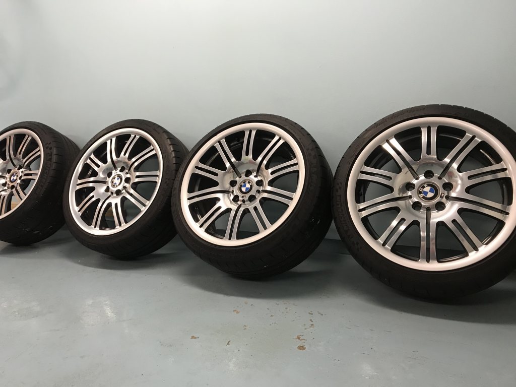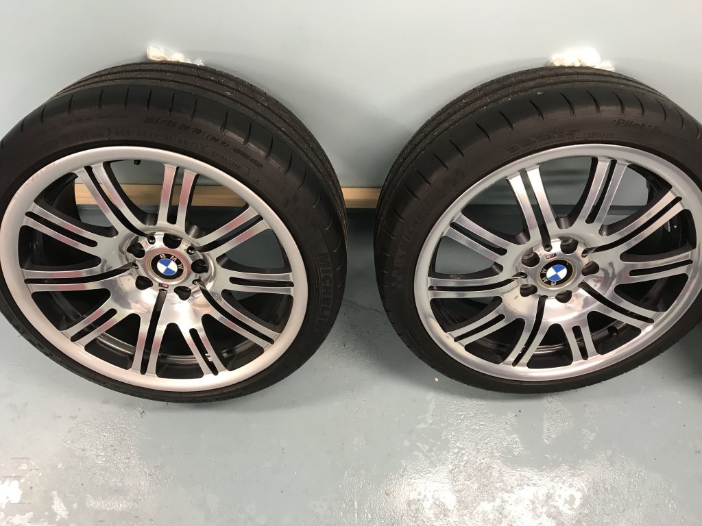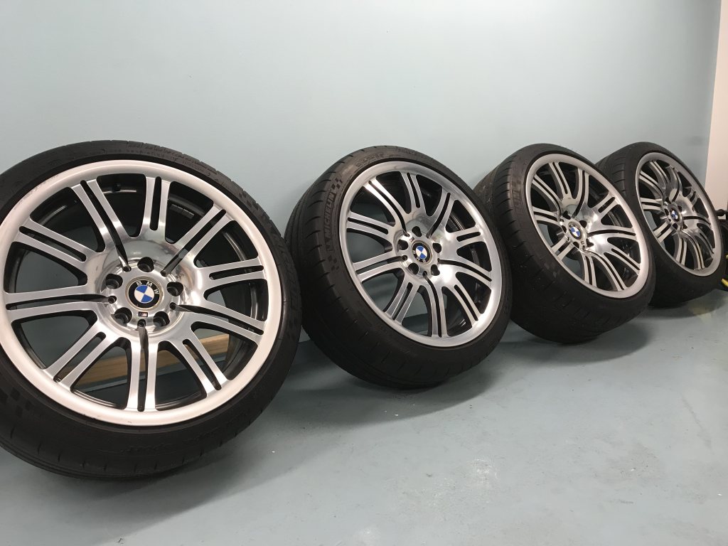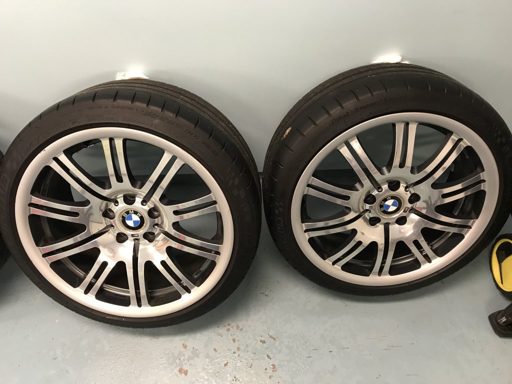 Bmw OEM 67M 19". Skodda med Michelin Pilot Super Sport 255 35 19 bak samt 225 40 19 fram. Fälgarna var tillval på m3 e46. Bakdäck 5mm kvar, framdäck 7mm. Produktionsdatum på däcken är 2016. Fälgarna ger ett bra helhetsintryck och har suttit på min tidigare M3 E46. Ingen obalans eller stök. Däcken är jämnt slitna. 12000kr //Niklas 0705416870 / Niklas.ribbhagen(a)gmail.com Finns i Karlstad.