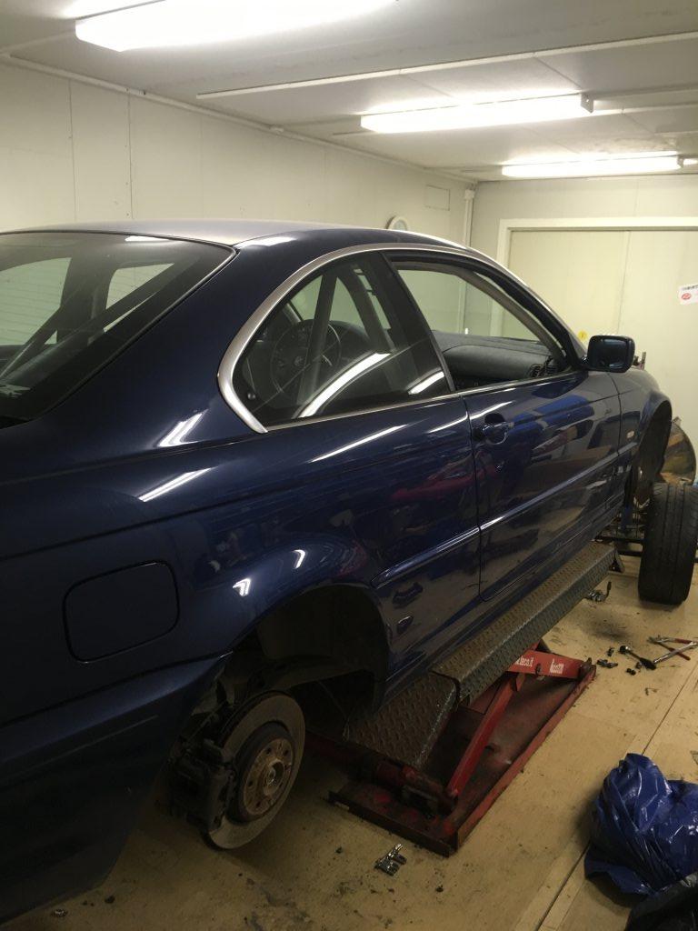 Säljer en BMW 330 coupé årsmod -00. Påbörjat trackday projekt. Bilen är typgodkänd med skyddsbur och 1 passagerare vilket inte är så vanligt på en så pass ny bil. Förutom buren är bilen i princip i originalskick med helt utriven inredning (som jag ej har). Motor och drivlina är original och bilen har gått ca 23.500 mil. Vänster dörr är rostlagad i nederkant och takplåten är bytt mot en helt ny utan taklucka, dessa delar är ej lackerade. Det sitter även en elektronisk huvudströmbrytare i bilen. Pris 55.000:- eller bud Skicka pm eller mail/sms om ni har fler frågor. Bilen står i Göteborg och kan visas efter överenskommelse. Tobbe Tel: 0707-200 370 mail: t@sallfors.com
