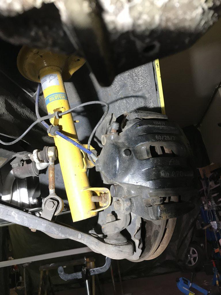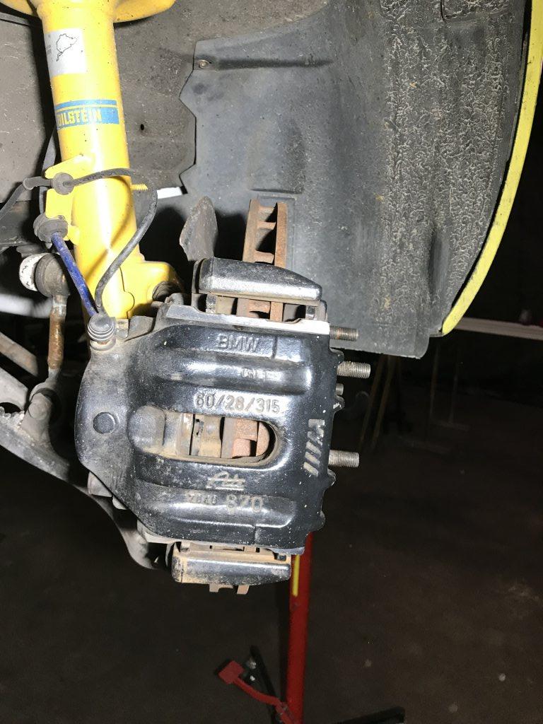 Jag har alltså M3 E36 frambromsar i bra skick på min Z3 coupé, men jag vill byta bort dessa mot original(320-328). Eftersom navet med dess infästningar skiljer mellan M3 och övriga vill jag byta hela paketet med navet, hjullager, bromsskivor, bromsok osv. Så om någon vill uppgradera sin 325 eller 328 till nästa säsong, hör av er! EDIT Det frågas om skick vilket jag ju inte nämnt. Nu var inte 20W LED på 50cm håll så smickrande för bromsarna, men jag bedömer skicket till 4 av 5. Oken är lackerade, inte av mig, vet inte om det är färg på dem original eller om någon tidigare ägare gjort det. Skivan har en liten kant men i övrigt i bra skick. Min tanke är alltså att lossa de tre skruvarna mot stötdämparen, samt undre kulleden och styrstaget. Det som då är löst är det jag vill sälja/byta, förutom bromsslangarna och pinnskruvarna som håller fälgarna...