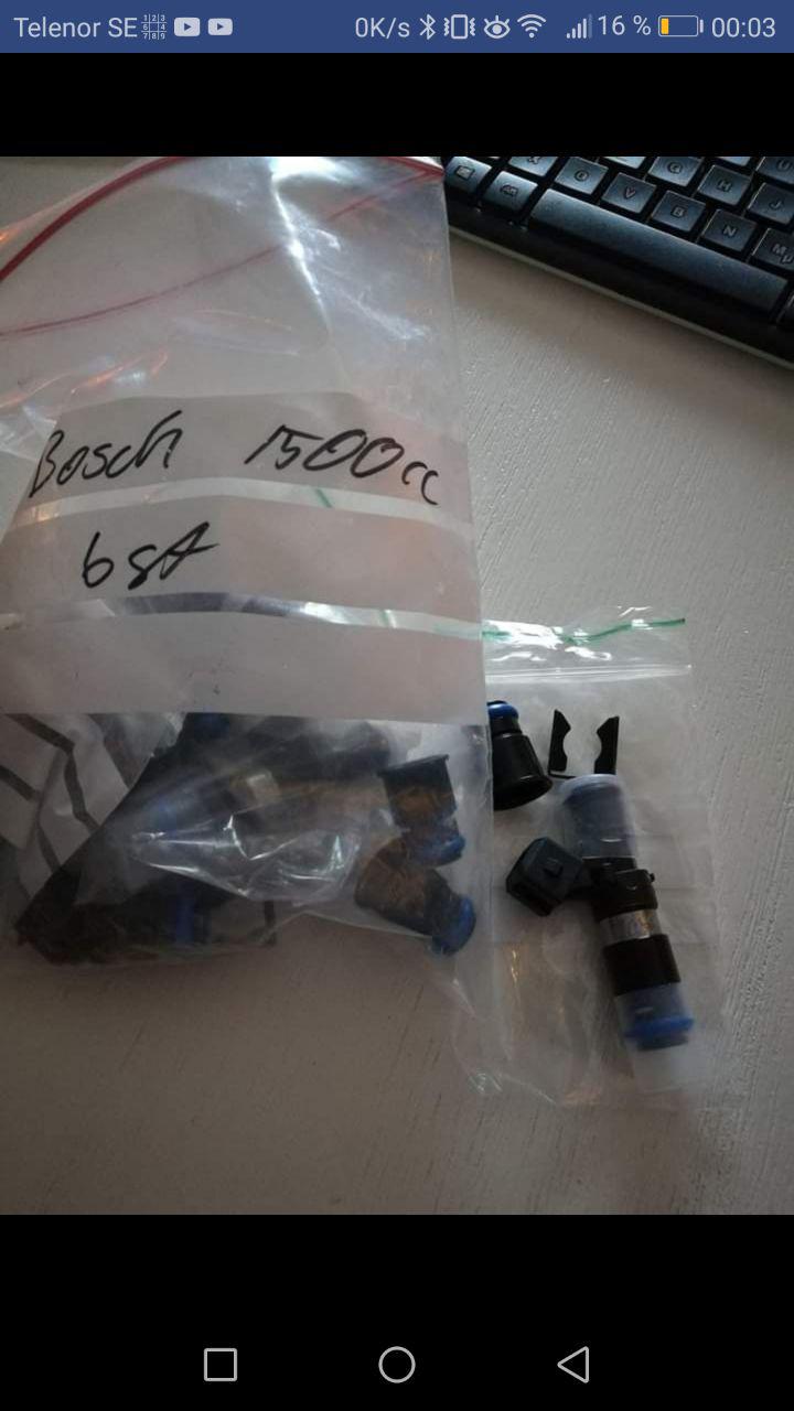 Säljer 6st nya 1500cc spridare. Bosch Motorsport spridare. Väldigt fina spridare även fast de är stora. Högohm 14mm topp och botten. 60mm långa med adaptrar som följer med. Normalpris ca 9000:- Pris: 7200:-