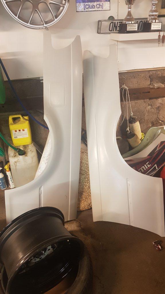 Hej, har två hela bakskärmar i glasfiber passande e46 Coupe, M3 breddning på skärmarna. Väldigt lätta, race finish. SÅLDA