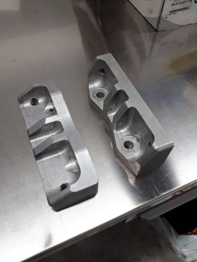 Bromsadaptrar, CNC frästa ur höghållfast aluminium. För Porsche 996 ok på E30 fram ihop med Seat Cupra 315 mm skivor. Pris: 600:- Skicka PM eller ring O72 - 72 32 429, svarar jag inte så ringer jag upp.