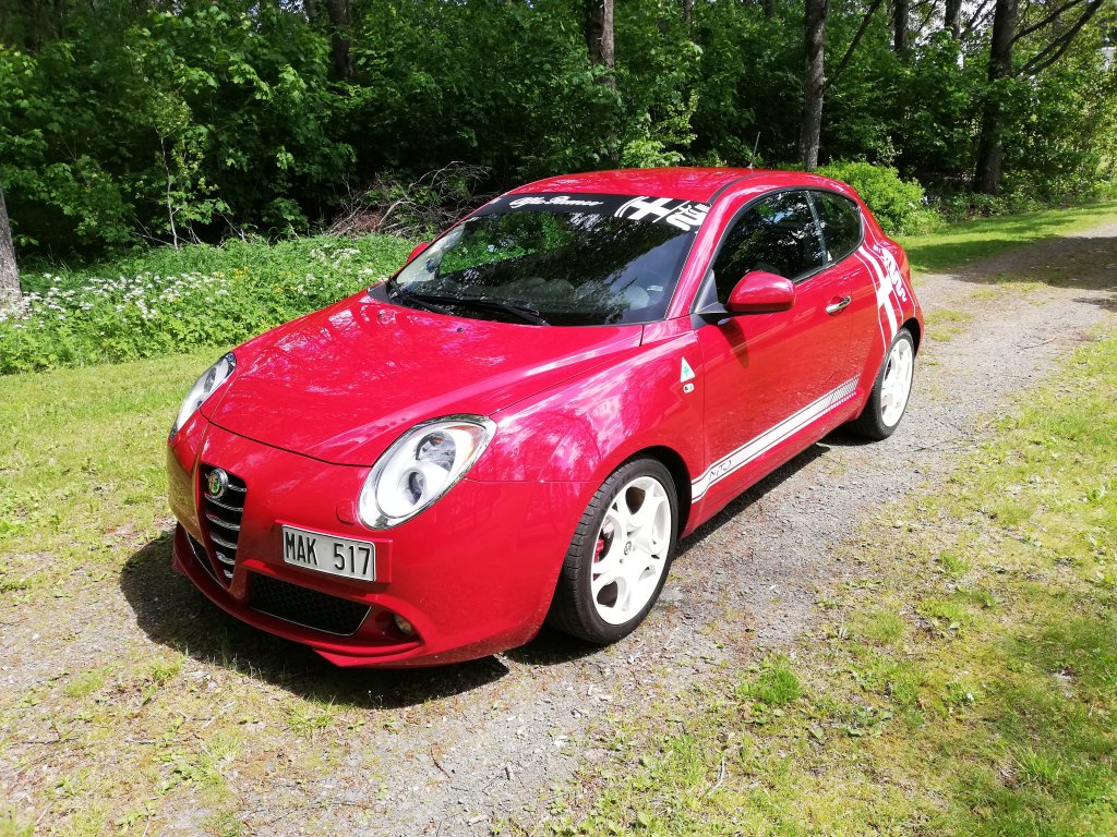 Nu är "Retstickan" till salu. Det är en Alfa Romeo MiTo 1.4 Multi-Air Distinctive 135 Hk Årsmodell: 2013 Köpt av mig i Juli 2014 på Hedin Bil Göteborg där den gått som demobil. Mätarställning i dag är ca. 7900 mil. Besiktigad 1 april 2019 utan anmärkning. Påkostad utöver standardutrustning med: BREMBO bromsskivor fram + FERODO DS 2500 bromsbelägg samt nya bromsskivor + belägg bak, hjullager bak) FERODO Racing Super Formula bromsvätska H&R 30 mm sänkfjädrar K&N sportlufftfilter DIESELKRAFT effektbox steg 1 Levereras med original 17' "hästsko" pulverlackerade vita orginalfälgar inklusive 2 st nya däck 215/40. Ska bli nyservad med Continental kamremsats inkl. vattenpump. Pris: 69.000 SEK med originalhjul Erbjudande: Yokohama ADVAN Neova AD08 R-däck 205/45 x 16 monterade på renoverade och pulverlackerade 16' original Alfa Romeo Teledial från en GTV 916 Spacers 20 mm från 4/98 till 5/98 byggda av SPACER.SE Pris: 74.000 SEK inklusive "Trackdaykitet" ovan. Även byte mot Alfa Romeo Brera eller GT (ej diesel) Michael Emilsson Vetlanda 076 - 186 95 99