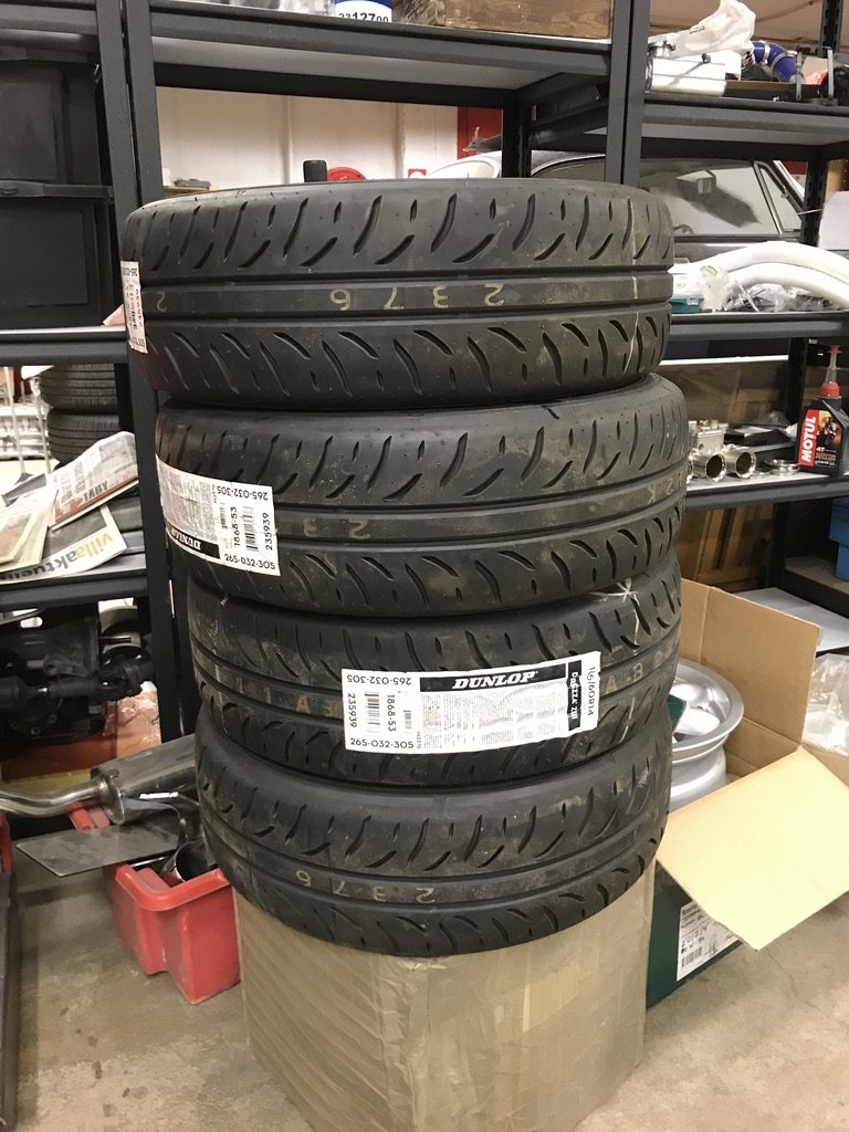 4 helt nya Dunlop Direzza ZIII, 185/60/14 till salu. Däcken har inte rullat en meter och har etiketter och märkning kvar på slitbanorna. Tillverkade senhösten 2018 och inköpta i februari 2019. Däcken var tänkta att sitta på min Lotus Elan S4 men tyvärr går de inte riktigt in under bakskärmarna och är därför till salu. Det här är optimala däck för den som har en klassisk sportbil med 14 tums fälgar och emellanåt vill köra track day events samtidigt som man har oöverträffat grepp för inspirerad vardagskörning. Däcken passar bland annat alla klassiska Alfa-modeller med 14" fälgar.