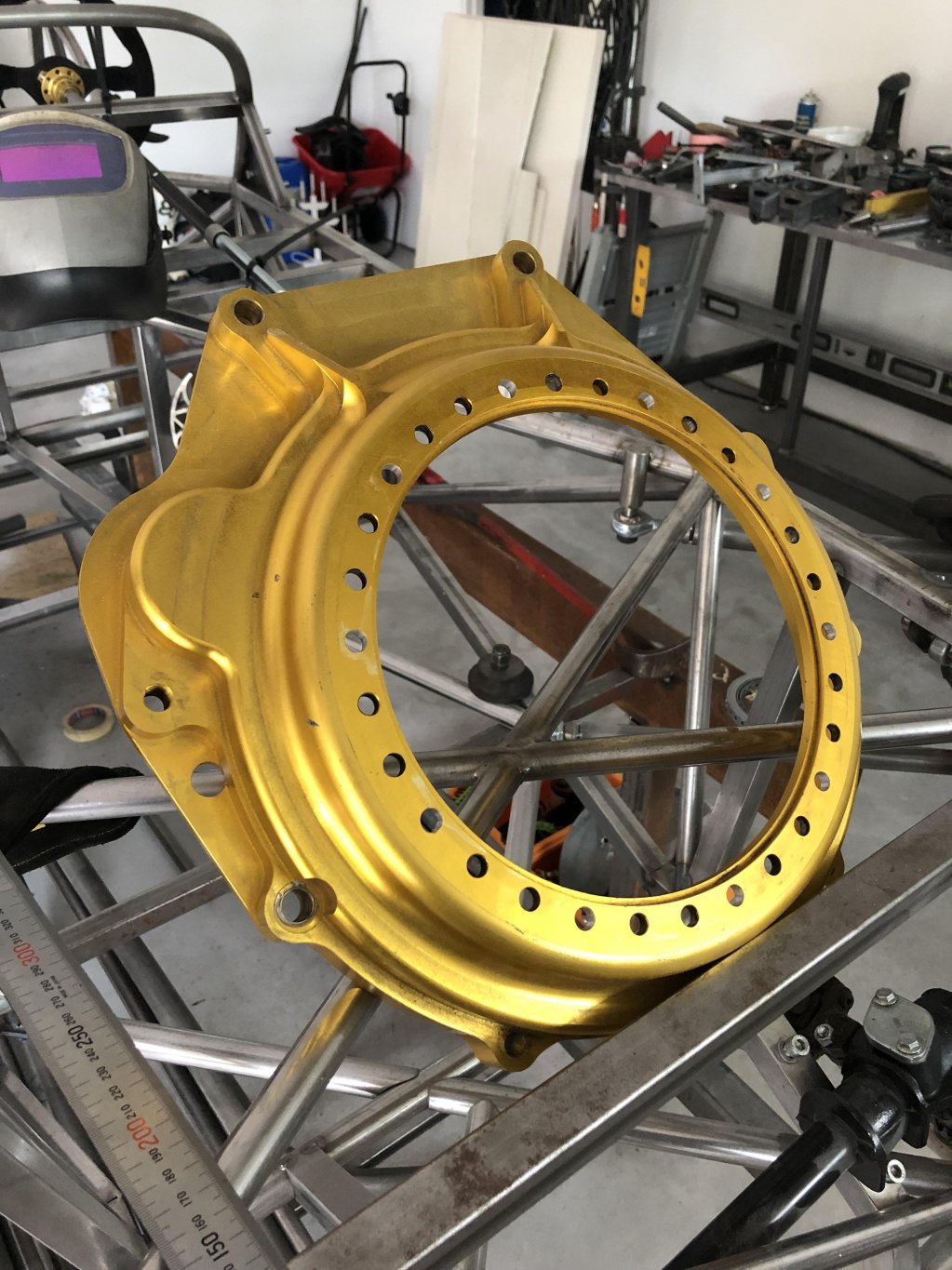 Bellhouse passande Honda K20 motor. Jag tänkte själv använda detta till ett sevenprojekt men i sista stund bytes motorvalet ut. (Tyvärr). Passar alltså på K20 motorer och övergår till ett cirkulärt bultmönster så att valfri adapter till växellåda kan monteras.