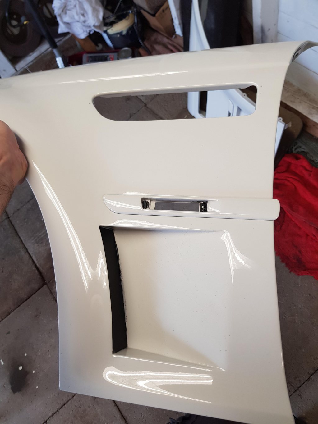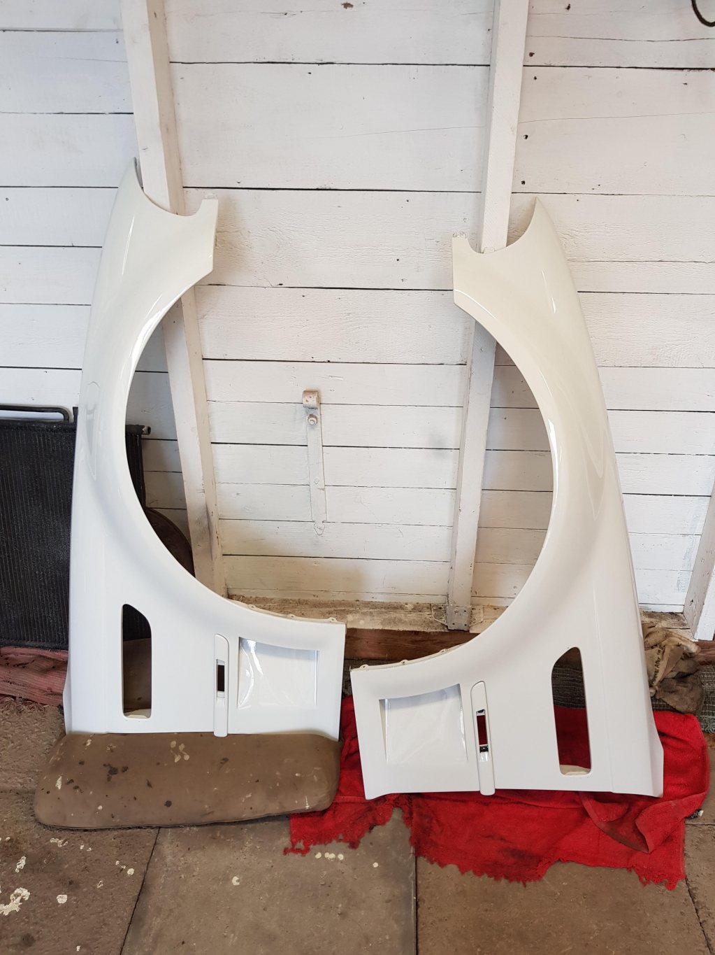 Säljer skärmarna då jag insett att dom är för fina och unika för att jag skall kunna ha dom på min bil. Höger och vänster i plåt, mkt fint skick! (Säljes utan sidogälar). Lackade i Alpinvit3.