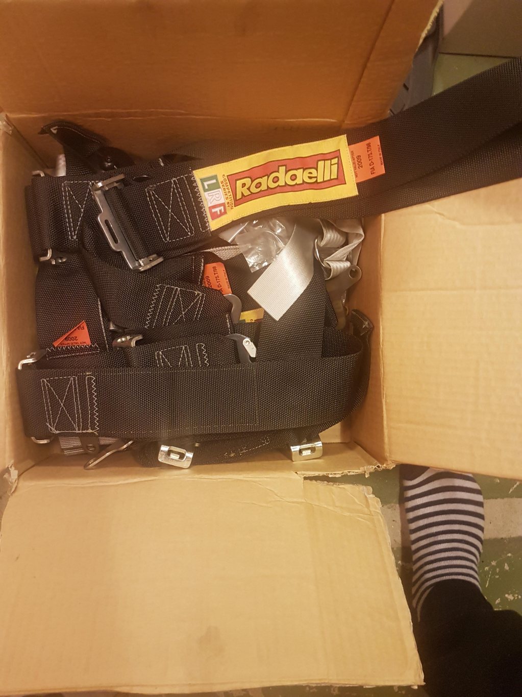 Helt nya 2x 6p bälten från Radaelli säljes incl karossöglor. FIA godkännande utgången, men oanvänt och legat på hyllan. Pris 1000SEK plus ev frakt