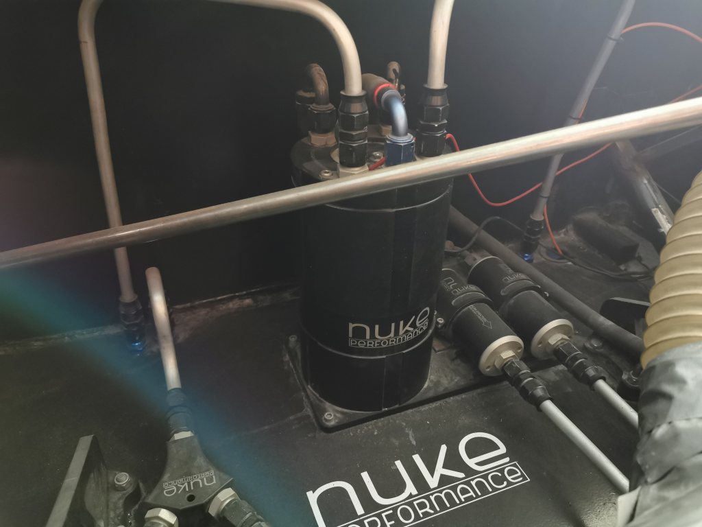 NUKE performance catchtank monterad på billet platta med dubbla slimfilter 10 micron.