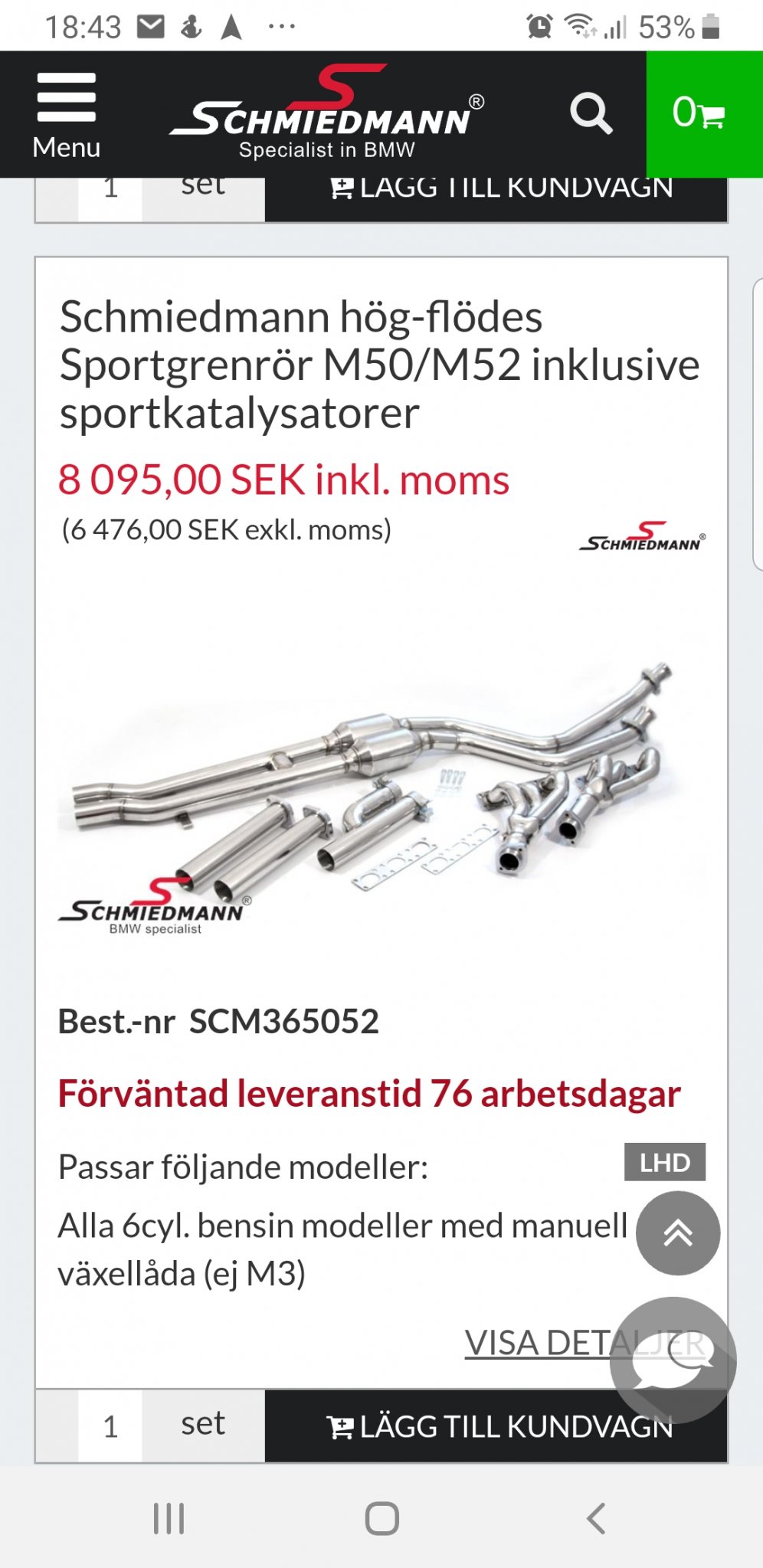 Sålt. Grenrör å racekattar Schmeidmann Bmw M50 M52.